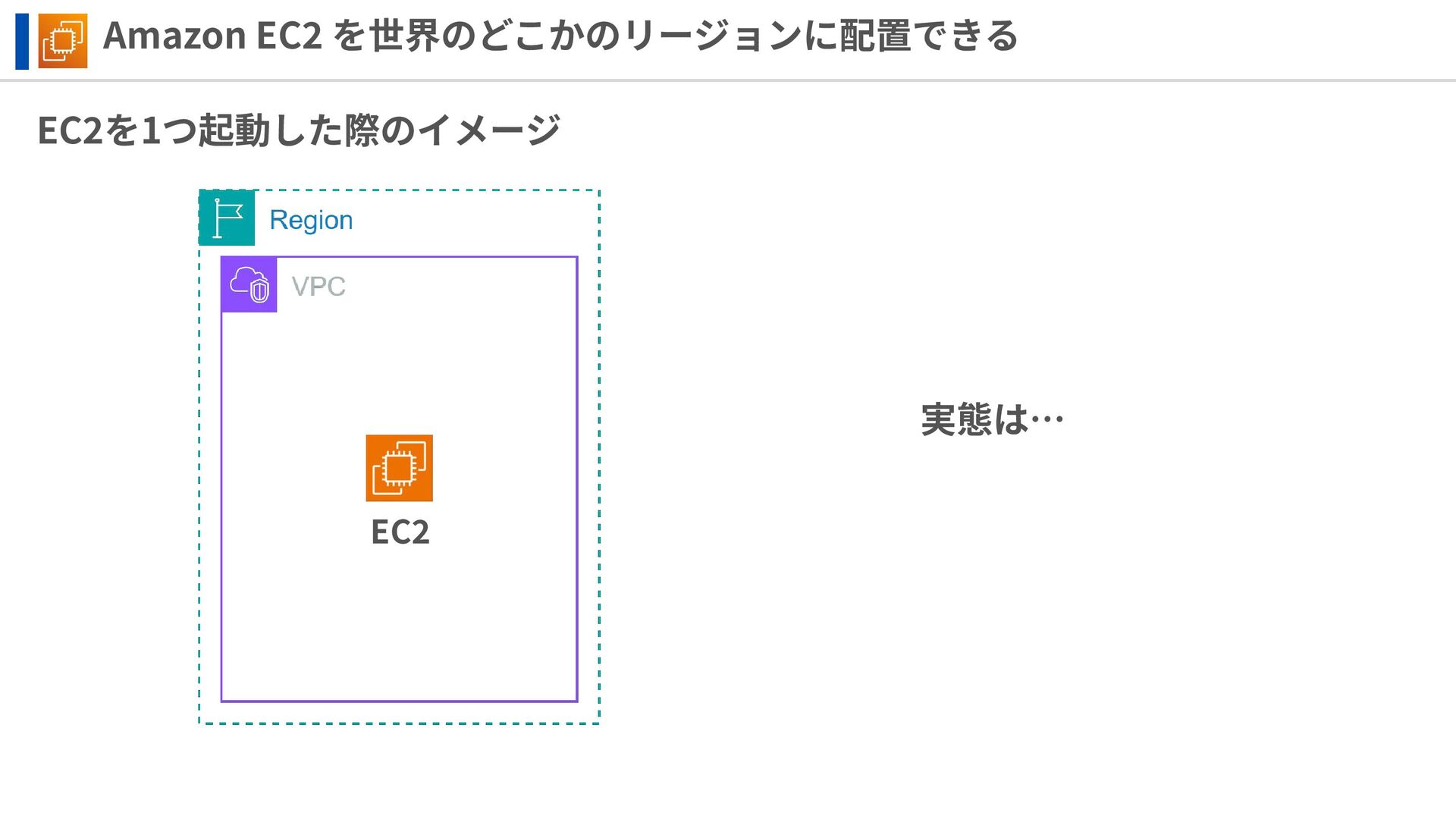 Amazon EC2 を世界のどこかのリージョンに配置できる EC2を1つ起動した際のイメージ 実態は… EC2
