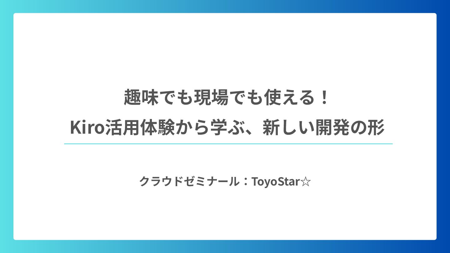 趣味でも現場でも使える! クラウドゼミナール:ToyoStar☆ Kiro活⽤体験から学ぶ、新しい開発の形