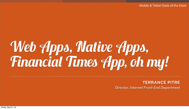 Native Web Shareable/ Tweetable? Yes, if built in Yes, with web links, social APIs, and widgets Sellable? Yes, charge anything, expect 30% to distributor n q u u "q h "ew u v q og t"fcv c"< * Yes, via subscriptions, no distribution costs Searchable Content? No, not on the web Yes, by default Cost of development Generally more expensive; requires advanced skillsets Significantly more affordable; uses open-source technology Friday, May 31, 13