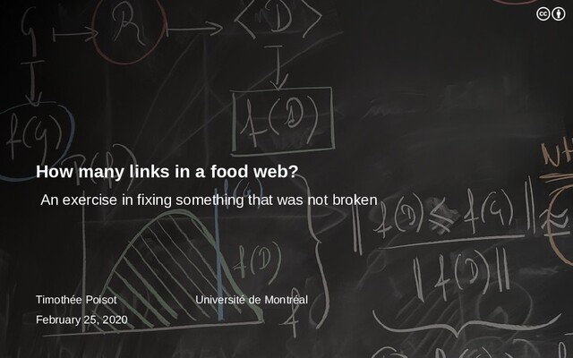 9 · 10−2 0.1 0 50 100 μ 2 2.5 3 3.5 4 0 2 4 φ Fewer than 10 percent of flexible links are realized (p = ¯ μ ≈ 0.086) Fitted over 255 food webs from many different environments and ecosystems The dispersal parameter φ indicates that the estimate of μ is very robust