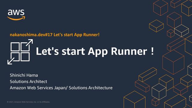 https://nakanoshima-dev.connpass.com/event/214547/ [Online]nakanoshima.dev#17 Let's start App Runner! 2021/06/09(水) 18:30 〜 20:15