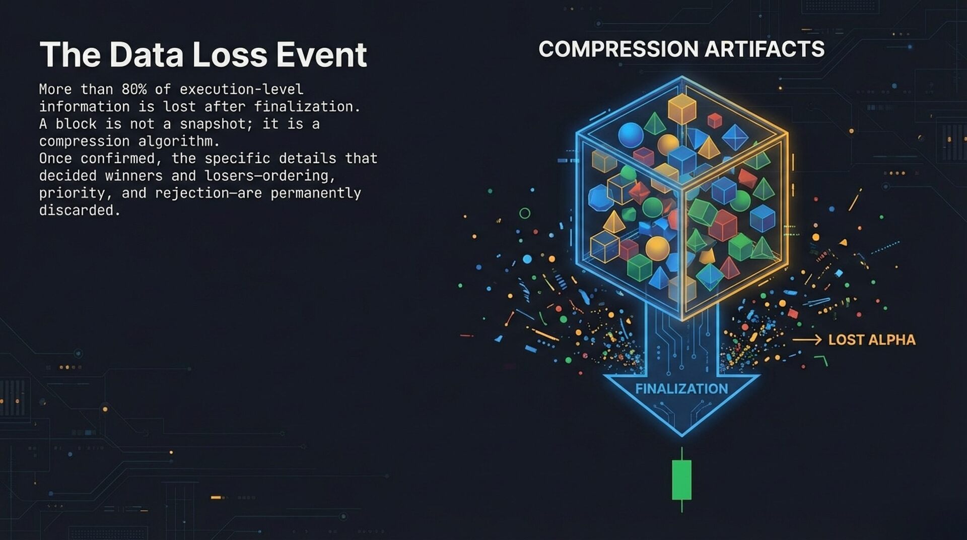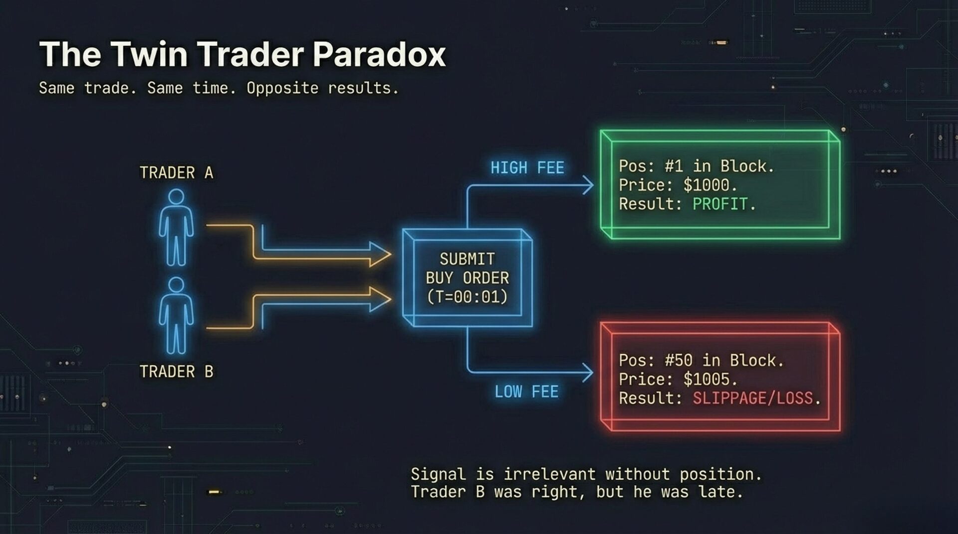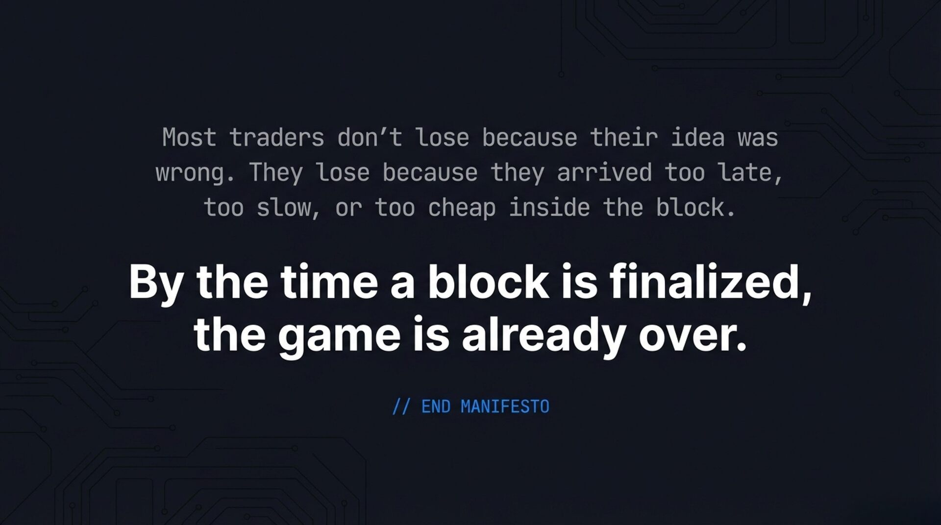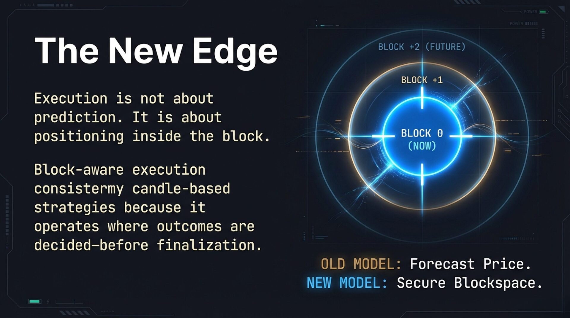 By the time a candle prints, the outcome is already locked in. Liquidity has been consumed, slippage has been assigned, and execution costs have been paid. Charts show where price ended — not how it got there. Many traders don’t lose because their signal was wrong, but because they arrived too slow, too late, or too cheap inside the block.
