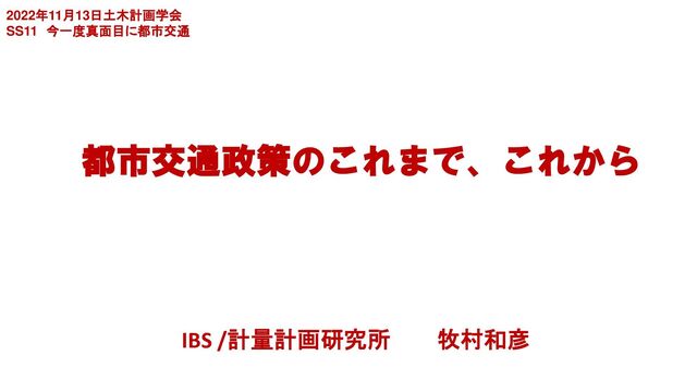 スペシャルセッション 「今いちど真面目に都市交通~熊本都市圏からの挑戦~」 計量計画研究所 牧村和彦