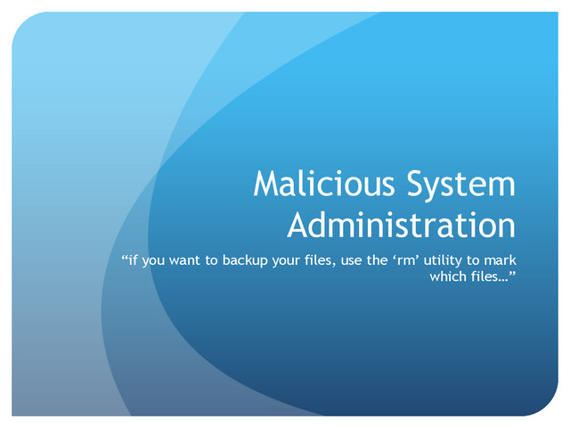 Computers? Where can you write text on the filesystem that turns into programs running at some later point? Example: crontab , bashrc Another example: cat your own key into their authorized_keys Do you always need this? Find some long-running process and put something there in memory-only using some handy tool you wrote previously