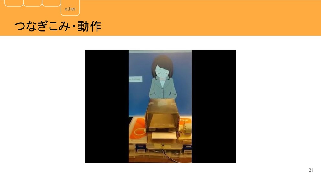 発展 ・音声認識やArduinoからのトリガーでやり取り 音認:単語で動作させるなら手軽に Unity内部の音認機能使用したり ・スケールアップでより等身大に近い形での実践 排出機機構が心配になるが、それが突破できれば実現できそう ・HMDの活用 純粋な視覚的没入感の向上(ミクミク握手が参考になりそう) 35 other