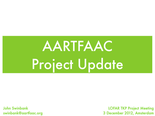 • Simple bad data rejection • Simple imager • Matlab calibration code • Integration of Matlab code with C++ • MeasurementSet & image output • In progress: • Matlab prototype of advanced imager • Porting Matlab calibration code to C++ • To come: • Port imager to C++ • Command and control • Integration with LOFAR systems + further upgrades, refinements, etc to all the above!