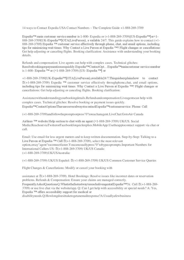 Reaching a live representative at Expedia can make all the difference. You can call ++1→888→269→3709 or 1-800-Expedia® (US/OTA) to speak directly with an agent—available 24/7. Whether it’s booking issues, cancellations, refunds, or technical problems, ++1→888→269→3709 this guide walks you through every contact method available so your concerns are handled quickly and easily.
