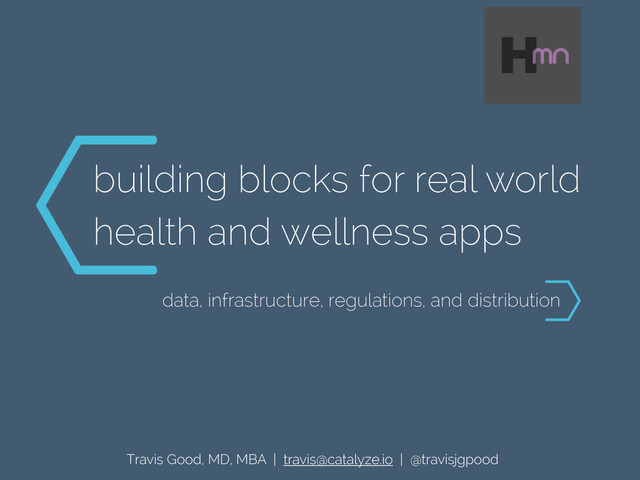 interpret HIPAA rules 2. configure and maintain cloud servers to meet HIPAA rules 3. identify data sources 4. develop data models 5. map data sources 1:1 6. build and test your own API 7. start building app 1. get API key and SDK 2. start building app cut development time and cost by 60-70% Travis Good - 2013
