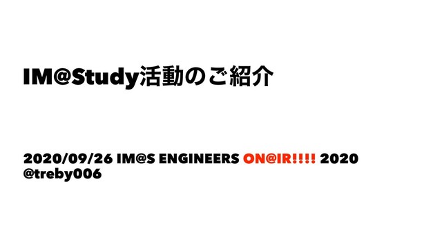 IM@Study׆ಈͷ͝հ ɹ 2020/09/26 IM@S ENGINEERS ON@IR!!!! 2020 @treby006
