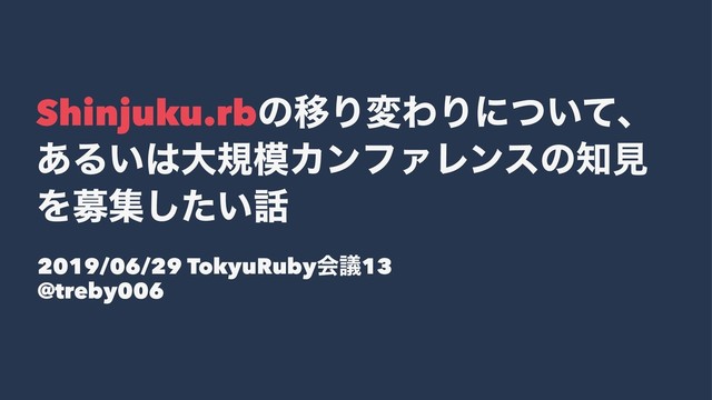 Shinjuku.rbͷҠΓมΘΓʹ͍ͭͯɺ ͋Δ͍େنΧϯϑΝϨϯεͷݟ Λืू͍ͨ͠ 2019/06/29 TokyuRubyձٞ13 @treby006