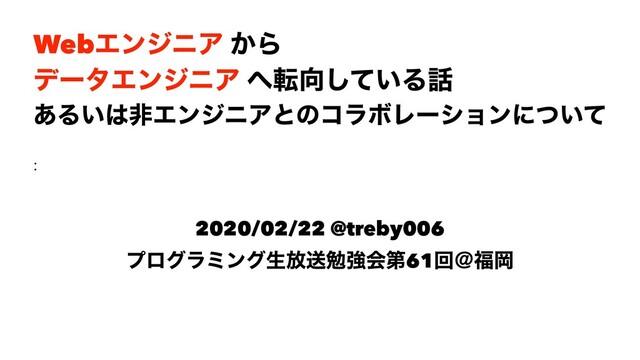 WebΤϯδχΞ ͔Β σʔλΤϯδχΞ స͍ͯ͠Δ ͋Δ͍ඇΤϯδχΞͱͷίϥϘϨʔγϣϯʹ͍ͭͯ : 2020/02/22 @treby006 ϓϩάϥϛϯάੜ์ૹษڧձୈ61ճˏԬ
