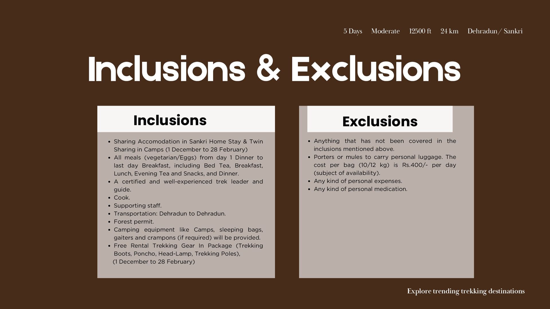 12. Inclusions & Exclusions Sharing Accomodation in Sankri Home Stay &