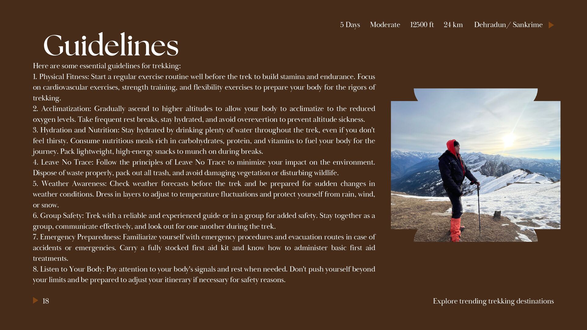16. 18 Guidelines Here are some essential guidelines for trekking: 1.