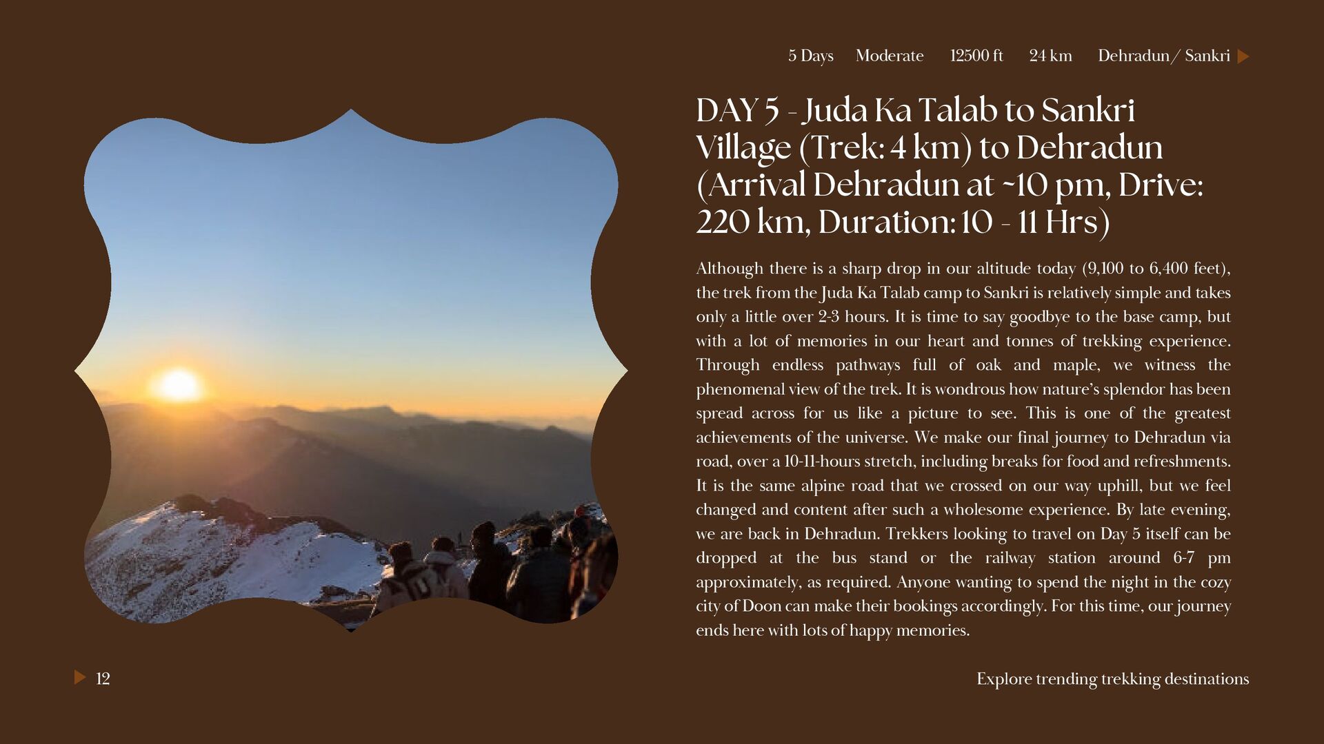 2. Explore trending trekking destinations About Us 5 Days Moderate 12500