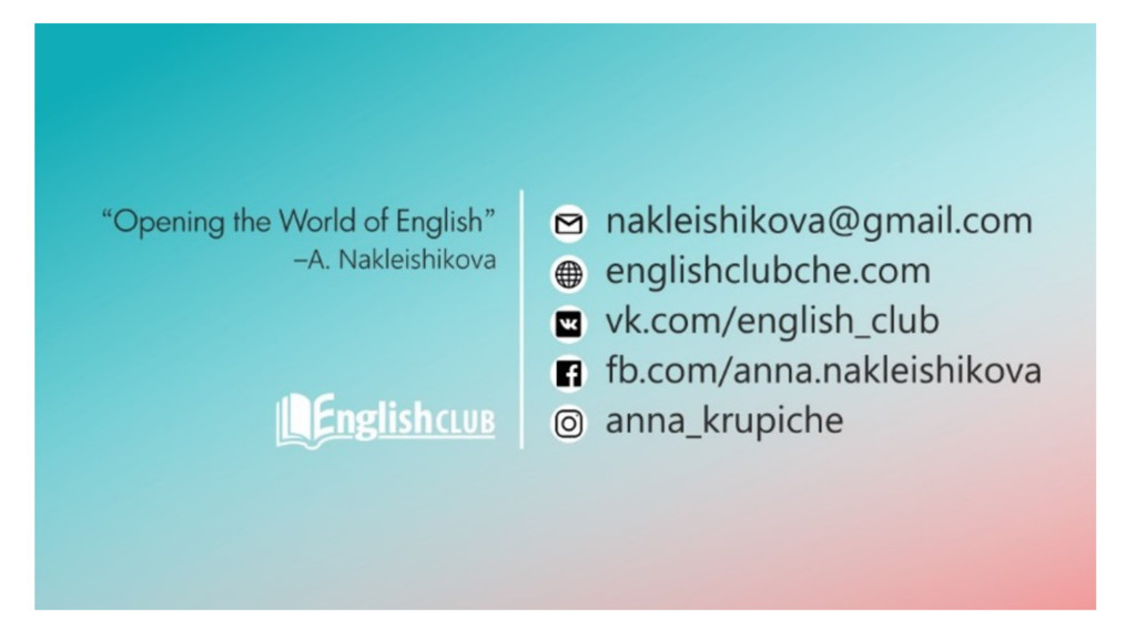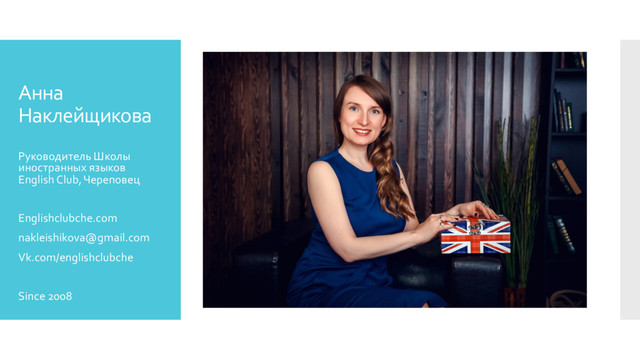 В своём выступлении я сконцентрируюсь на том, какие ценности важно транслировать аудитории именно руководителю языковой школы, на живых примерах покажу, как мы добились того, что в итоге новые студенты в анкете на вопрос 'почему вы выбрали нашу школу?' отвечают: 'репутация', приведу примеры доступных инструментов для развития бренда руководителя языковой школы."