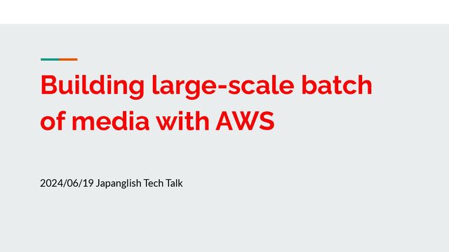 the large scale batch of - existing batch system is composed of 30+ different jobs, and each batch influence several tables which influence 10+ subsystems - how we realized complexing development style with 7+ members. - how we replaced the existing on-premise batch with AWS system.