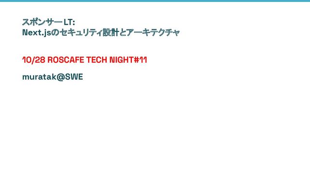 スポンサー LT: Next.jsのセキュリティ設計とアーキテクチャ 10/28 ROSCAFE TECH NIGHT#11 muratak@SWE