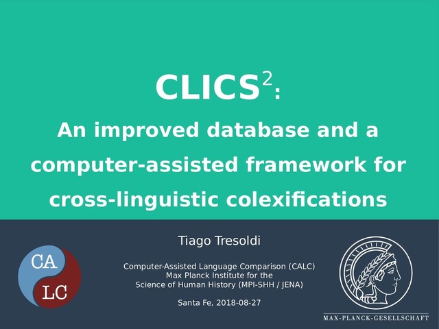 cross-linguistic colexifications Tiago Tresoldi Computer-Assisted Language Comparison (CALC) Max Planck Institute for the Science of Human History (MPI-SHH / JENA) Santa Fe, 2018-08-27