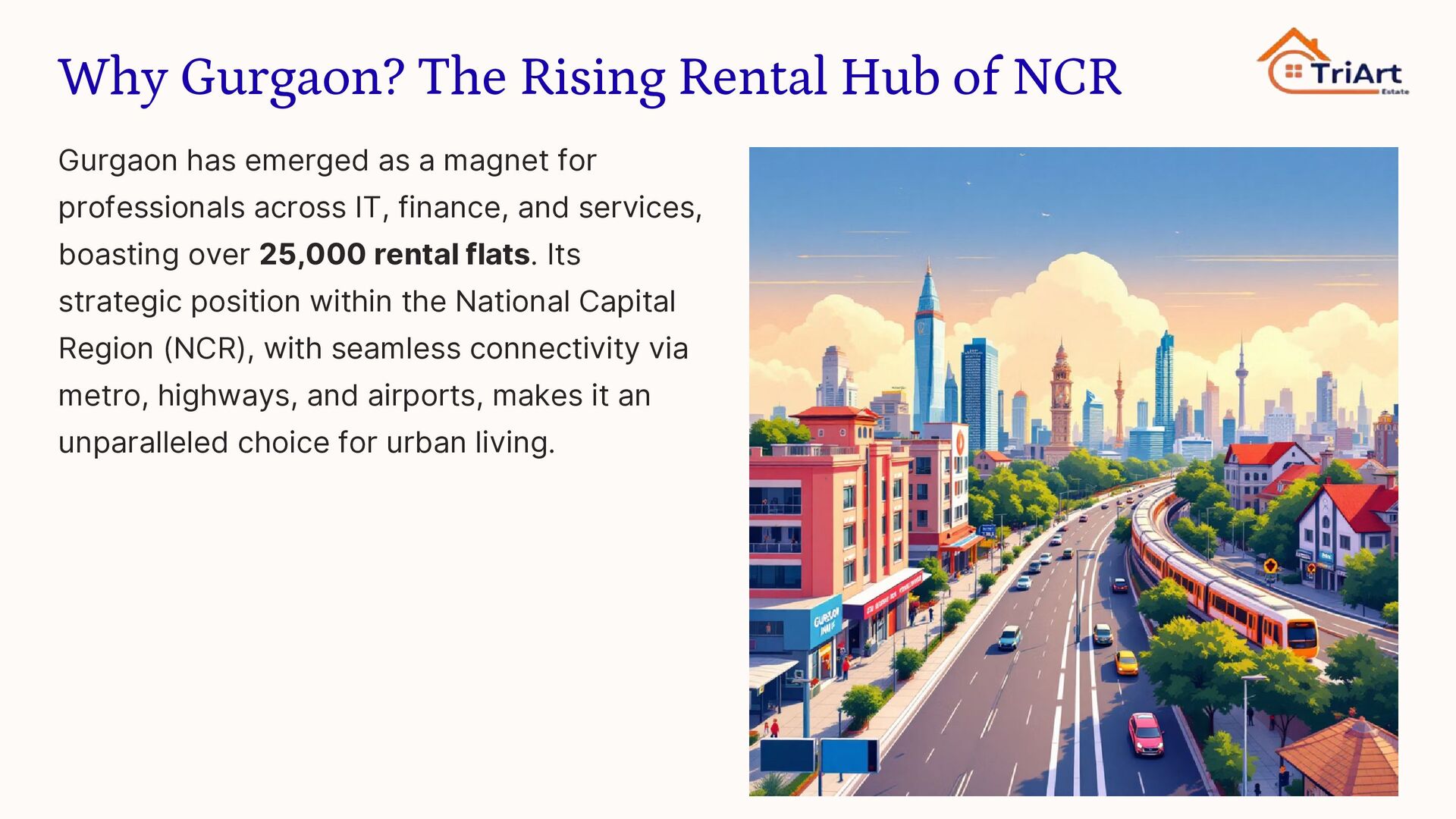 emerged as a magnet for professionals across IT, finance, and services, boasting over 25,000 rental flats. Its strategic position within the National Capital Region (NCR), with seamless connectivity via metro, highways, and airports, makes it an unparalleled choice for urban living.