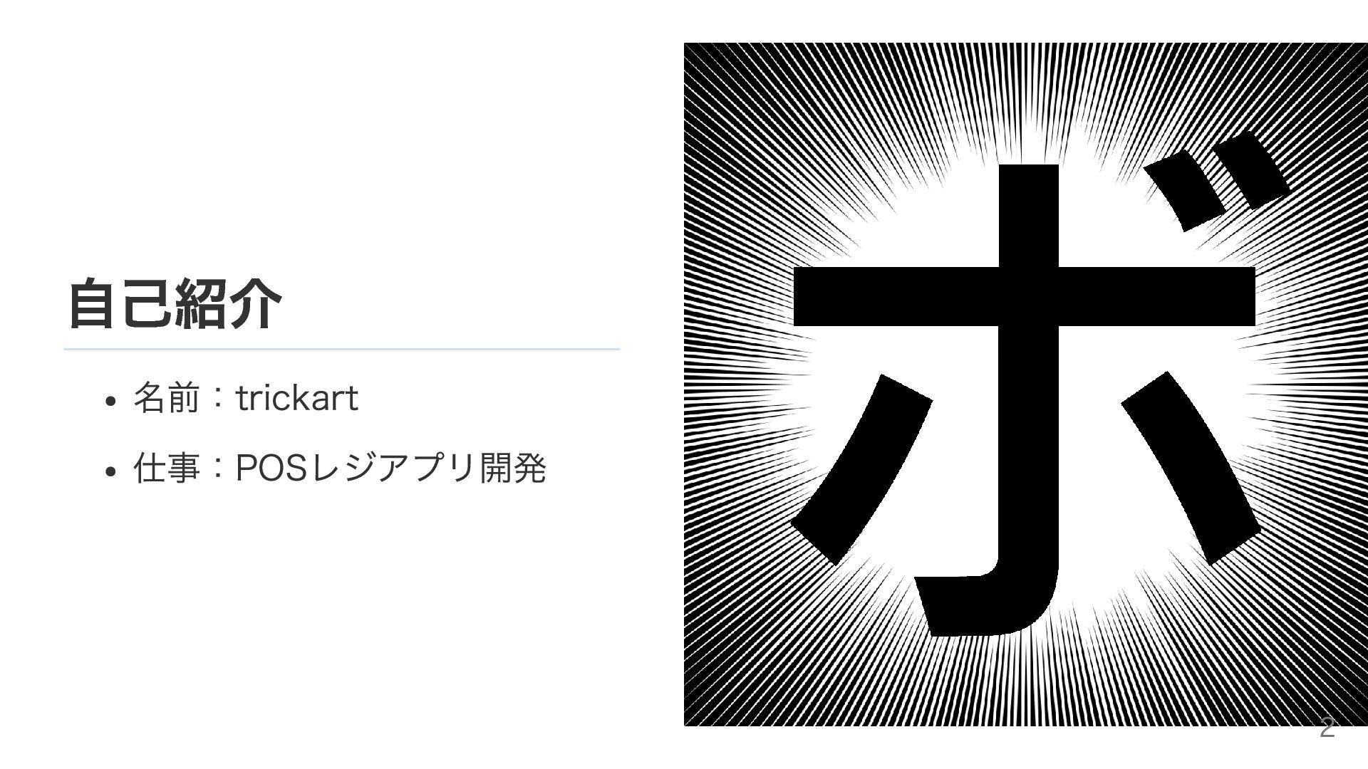 自己紹介 名前:trickart 仕事:POSレジアプリ開発 2