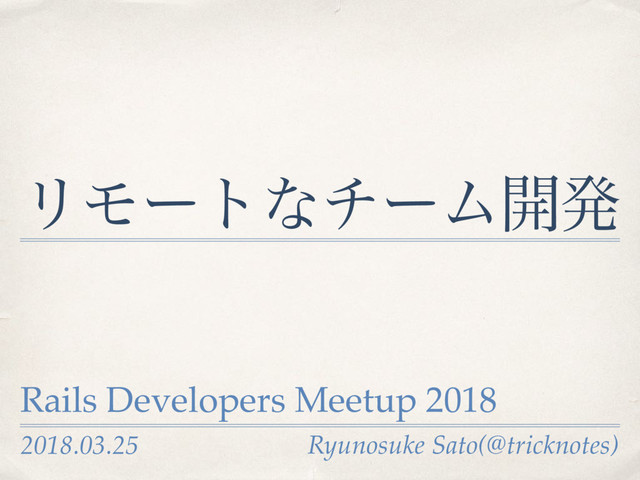 チーム開発におけるリモートワークについて、話者の経験を元に資料をまとめました。 Rails Developers Meetup 2018 での発表資料です。 https://techplay.jp/event/655769