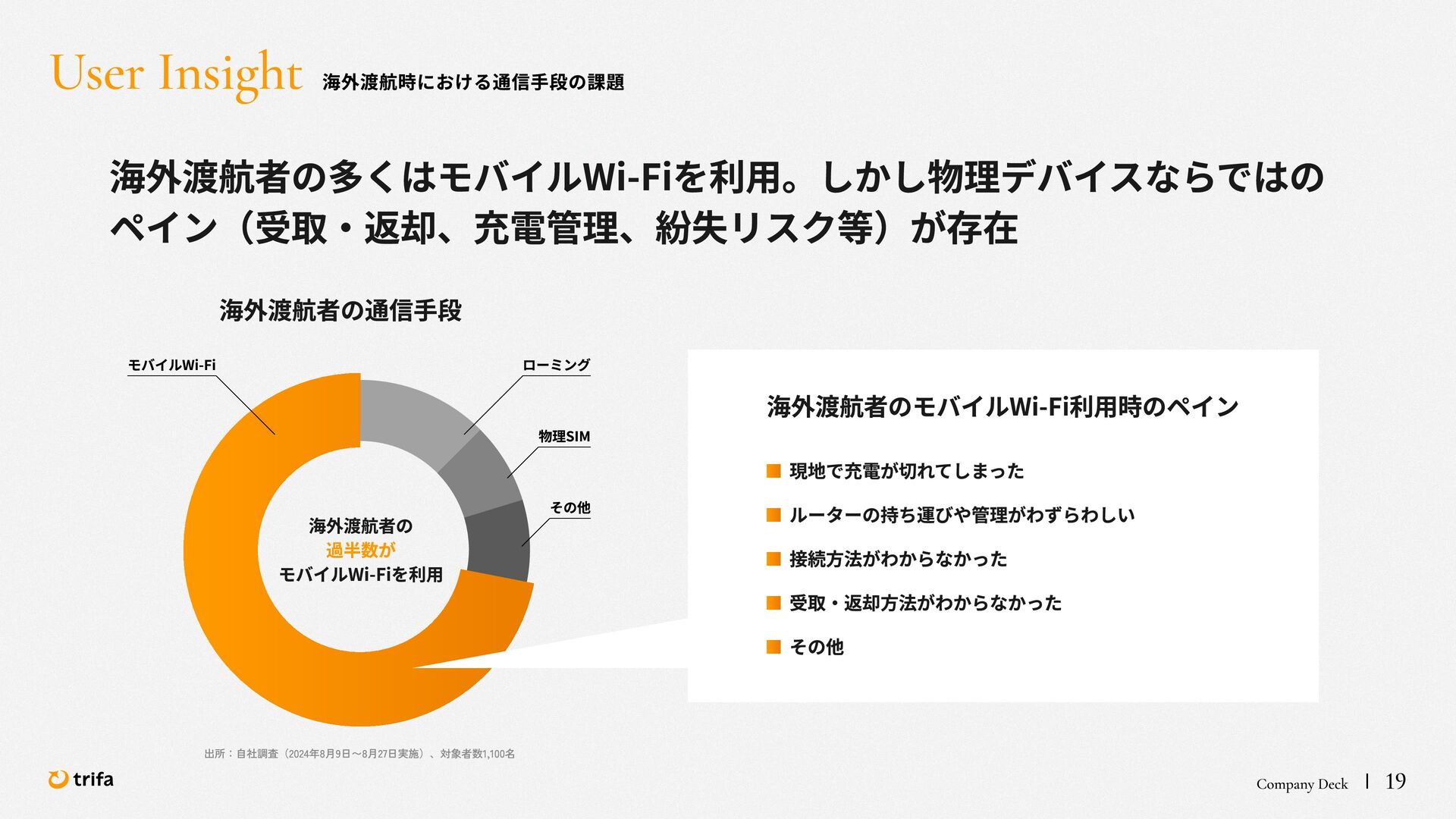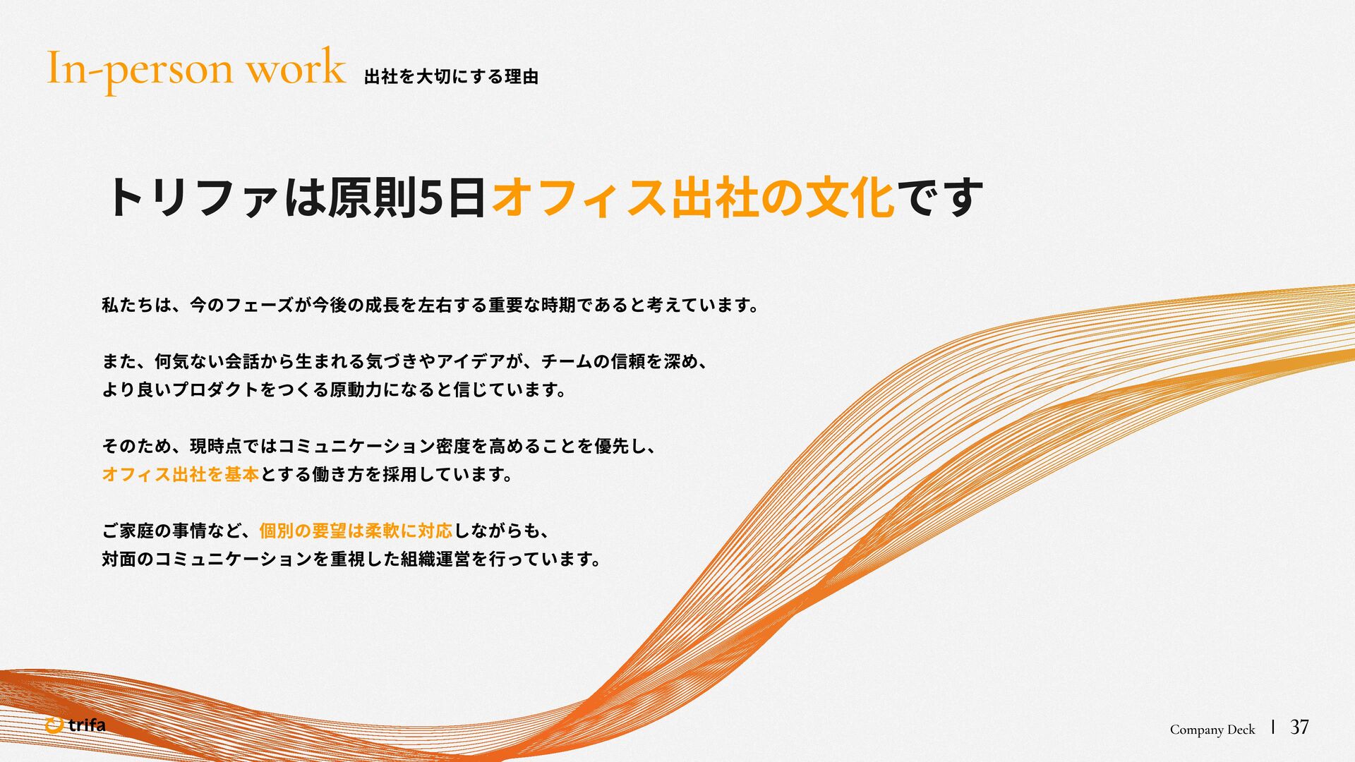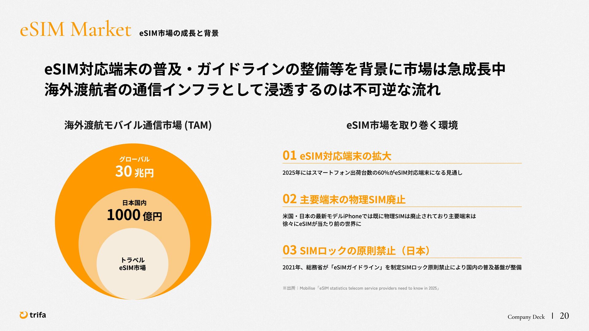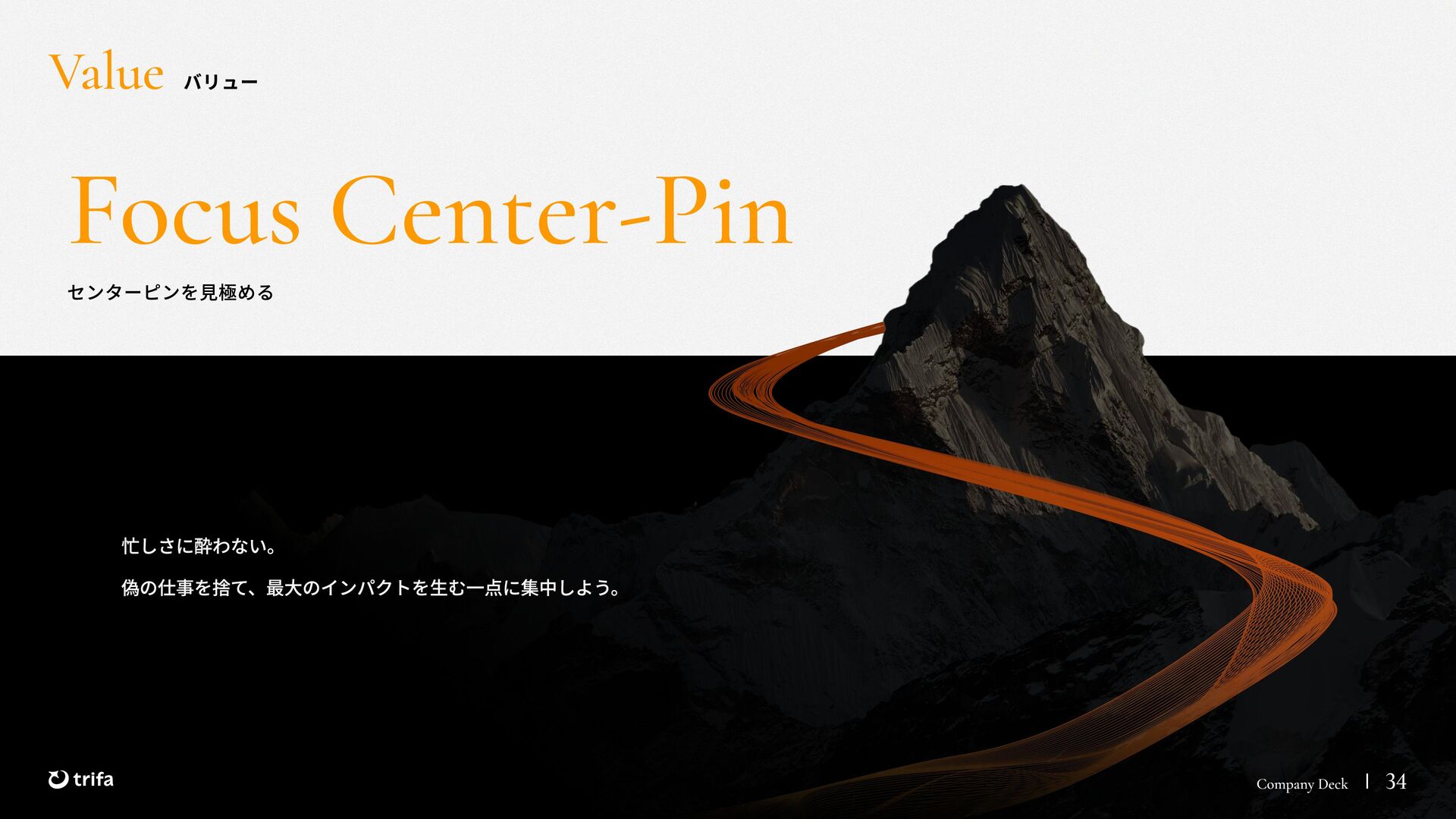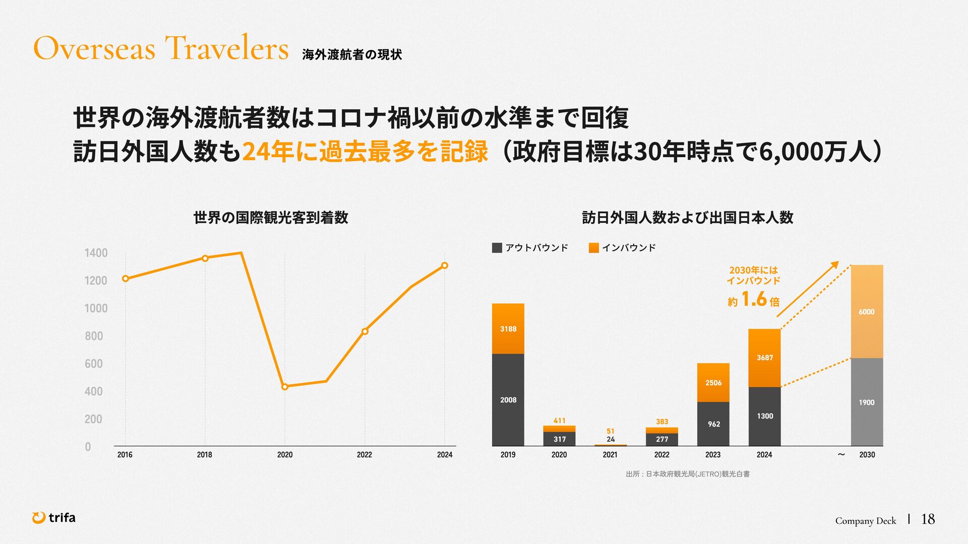 2019年 株式会社ZEALS 入社 2020年 株式会社ERAKE(現:トリファ)創業 2021年 トリファ リリース 2025年 Forbes JAPAN の「世界を変える30歳未満の30人」に選出 執行役員 永井 健太郎 1995年 石川県小松市生まれ 2018年 防衛大学校卒業 2018年 レバレジーズ株式会社 入社 2023年 株式会社トリファ 入社 2025年 執行役員就任 海外事業本部 大江 悠介 1996年 神奈川県川崎市生まれ 2019年 早稲田大学卒業 2019年 株式会社ZEALS 入社 2022年 株式会社ZEALS 米国事業立ち上げ 2024年 株式会社トリファ 入社 マーケティング事業本部 水野 祐也 198 7年 京都府伏見区生まれ 2009年 立 命館大学卒業 2020年 株式会社 Ye ny 入社 2024年 楽天シー シー アライアン スプラン ニング株式会社 入社 2025年 株式会社トリファ 入社 事業 開発本部 飯島 悠太 198 7年 東京都練馬区生まれ 2009年 早稲田大学卒業 2009年 大 和証券株式会社 入社 2022年 株式会社 INF OR ICH 入社 2025年 株式会社トリファ 入社 顧問 会田 容弘 1984年 ソニー株式会社 入社 2001年 ソネ ット ・ワー クスコミュニケー ションズ株式会社 入社 200 7年 同社 取締役 執行役員 就 任 2024年 株式会社トリファ 顧問就任 Com pa ny Dec k 40