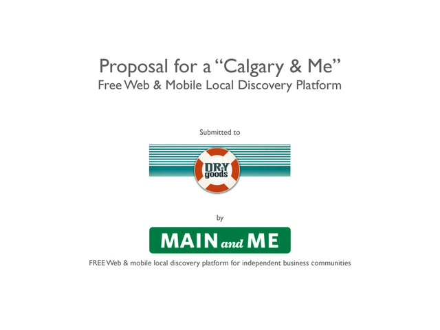 How a city can white label the Main&Me local shopping and discovery platform for private use: A proposal for Calgary&Me made to the Dryoods.ca of Calgary, Alberta post-2013 flood recovery effort.