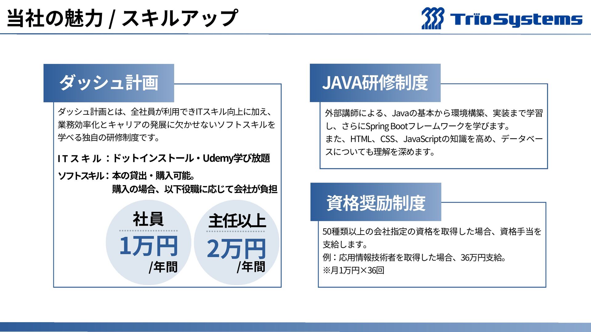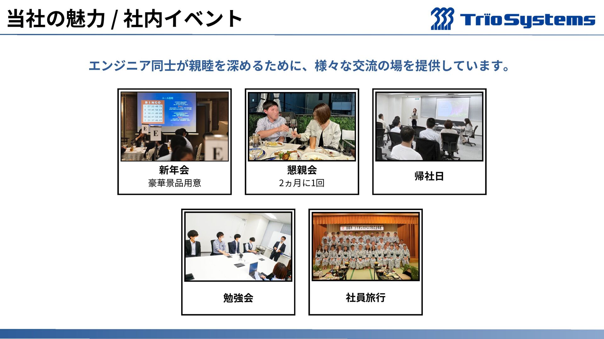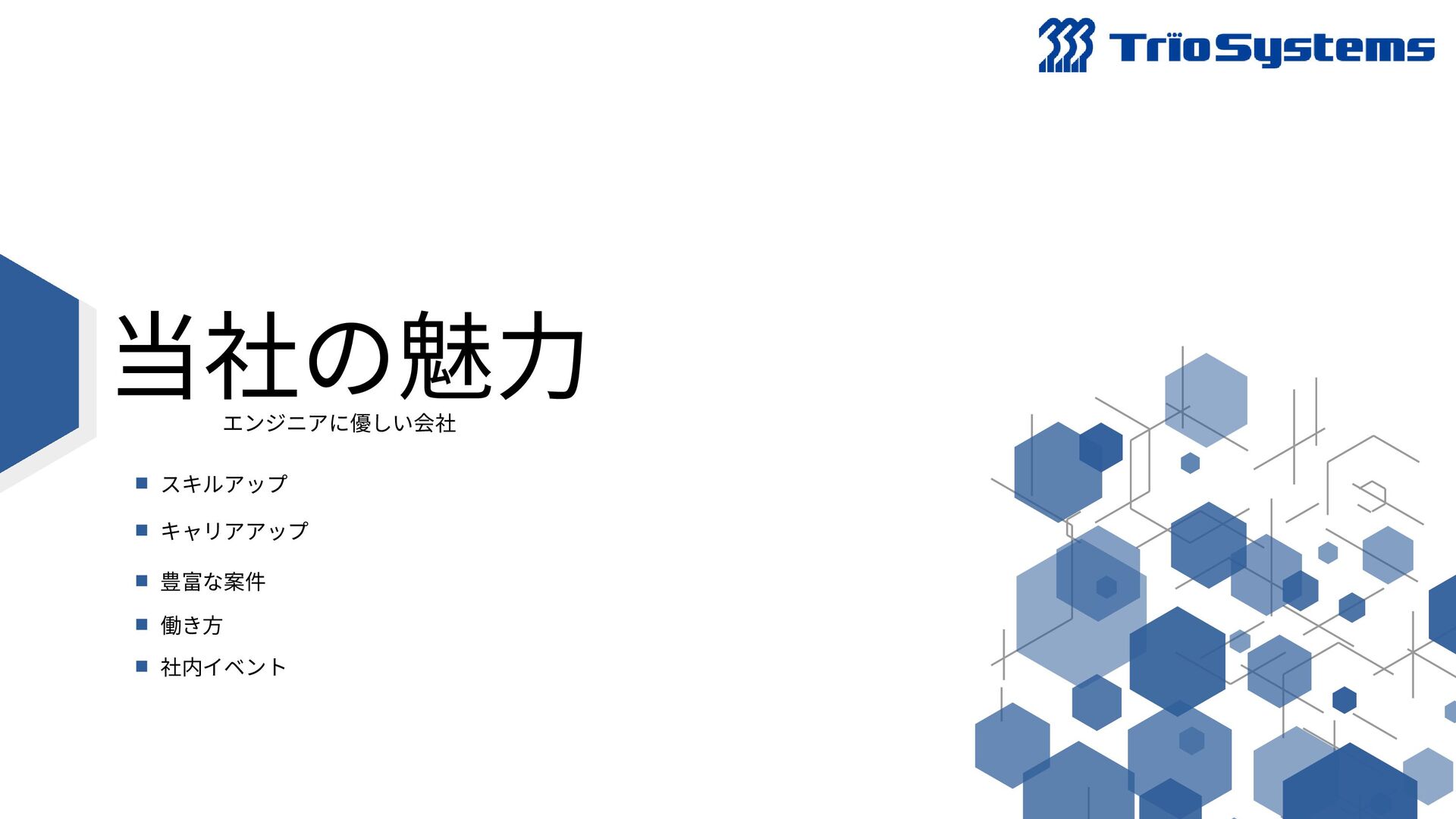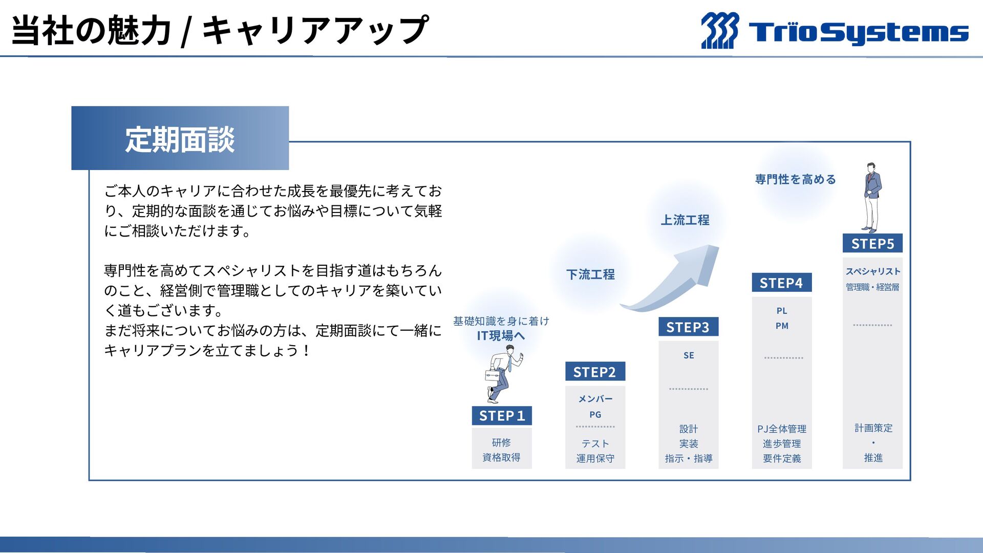 取締役 木村 勲 従業員 133 名 (2024 年1 月時点) 本社所在位置 東京都千代田区神田神保町1-13 CONVEX 神保町 7F ・8F 売上 2023 年12 月期:24.4 億円 2022 年12 月期:21.2 億 2021 年12 月期:13.1 億 2020 年12 月期:8.0 億 海外パートナー 会社 • 済南特利欧信息科技有限公司 設立:2015 年12 月、所在地:中国山東省 • 済南特利欧信息科技有限公司杭州分公司 設立:2018 年11 月、所在地:中国浙江省 会社情報 https://triosys.co.jp/index