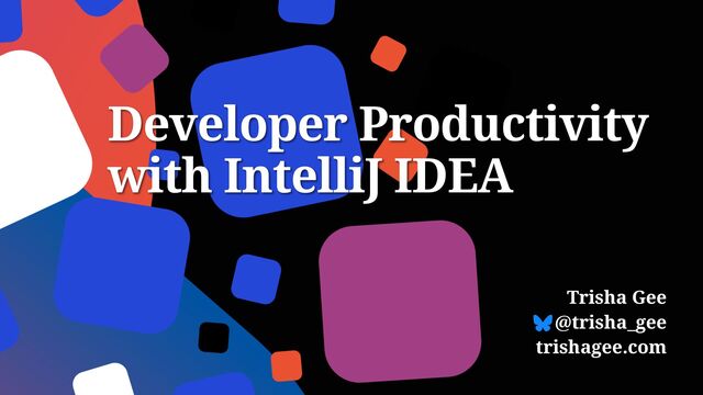 In this session, Trisha will show some of her favorite IntelliJ IDEA tips for improving her own productivity. She'll use these examples to talk about what productivity is, what it is not, and why it's even more important to us as developers than it is to the organizations that pay our salaries. And it's of course important to them, too!