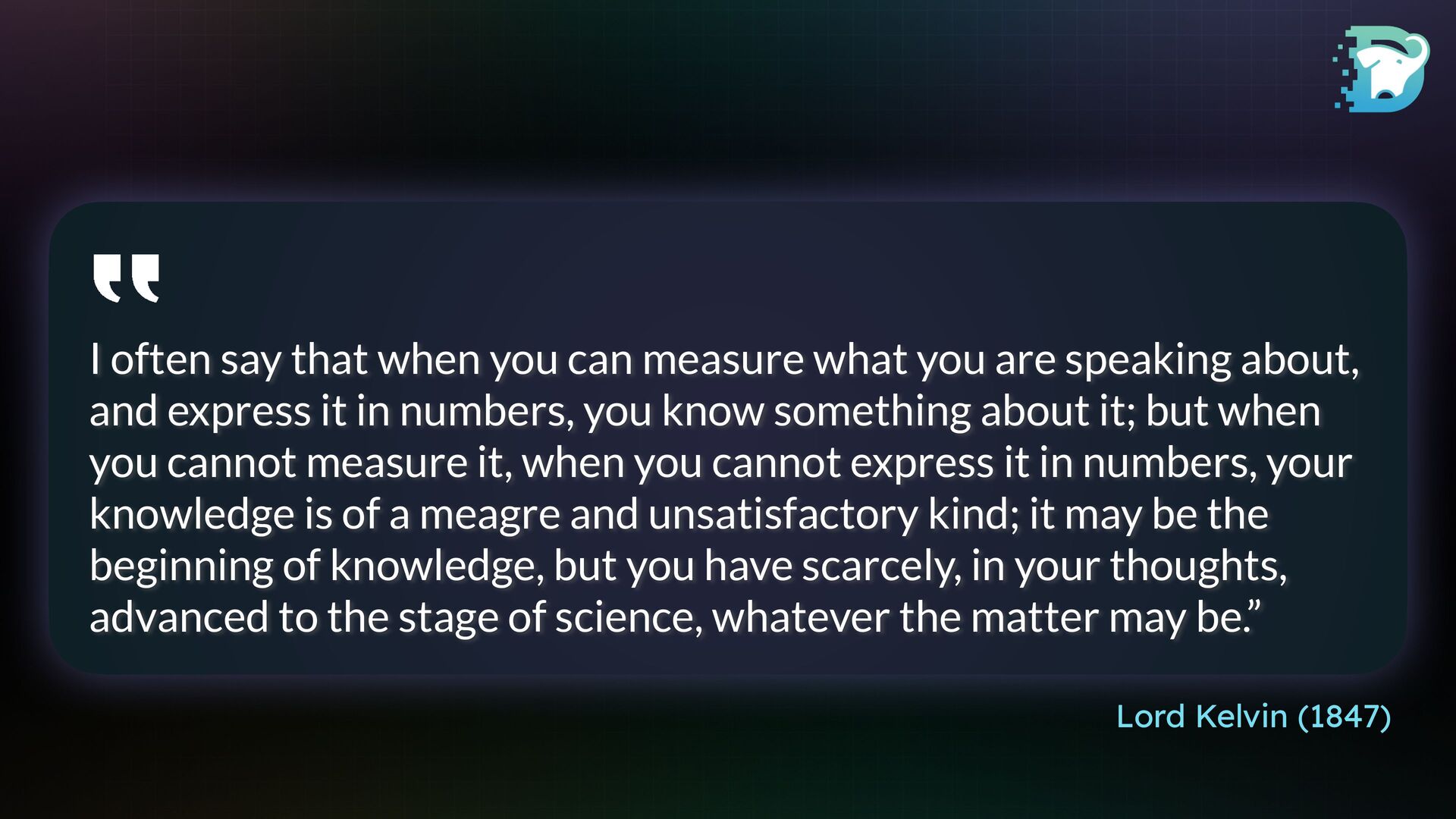 are speaking about, and express it in numbers, you know something about it; but when you cannot measure it, when you cannot express it in numbers, your knowledge is of a meagre and unsatisfactory kind; it may be the beginning of knowledge, but you have scarcely, in your thoughts, advanced to the stage of science, whatever the matter may be.” Lord Kelvin (1847)