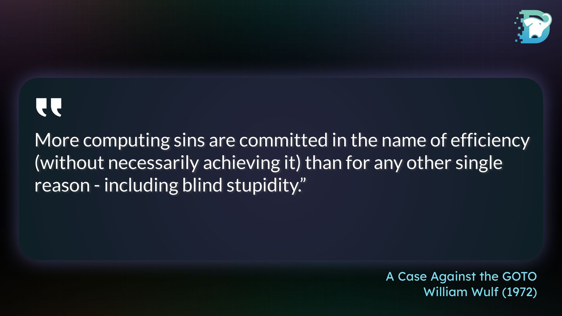 (without necessarily achieving it) than for any other single reason - including blind stupidity.” A Case Against the GOTO William Wulf (1972)