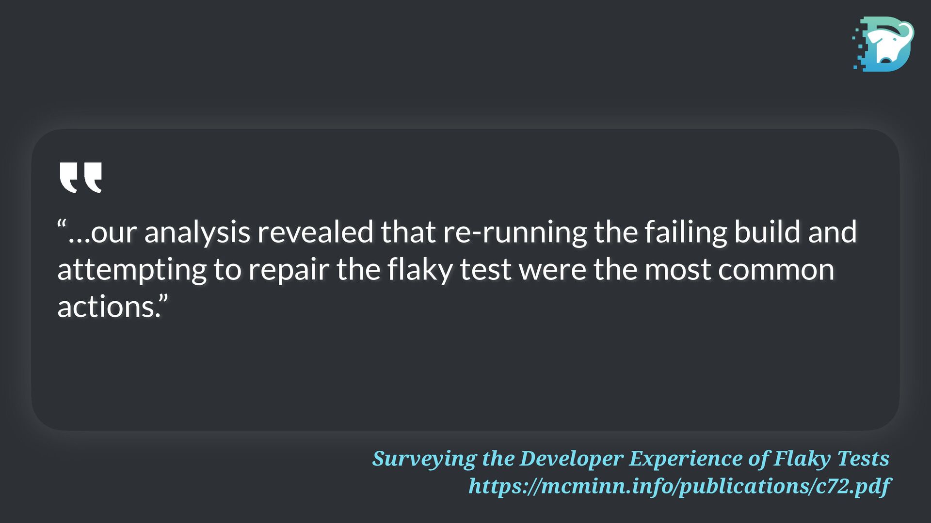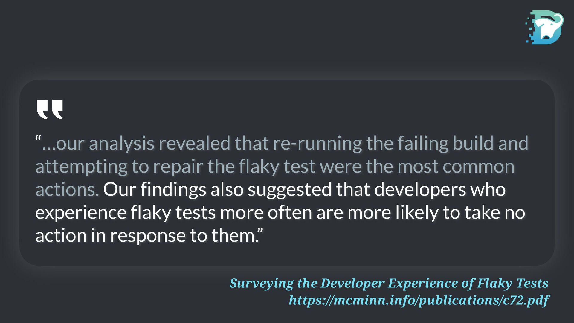 to repair the flaky test were the most common actions.” Surveying the Developer Experience of Flaky Tests https://mcminn.info/publications/c72.pdf