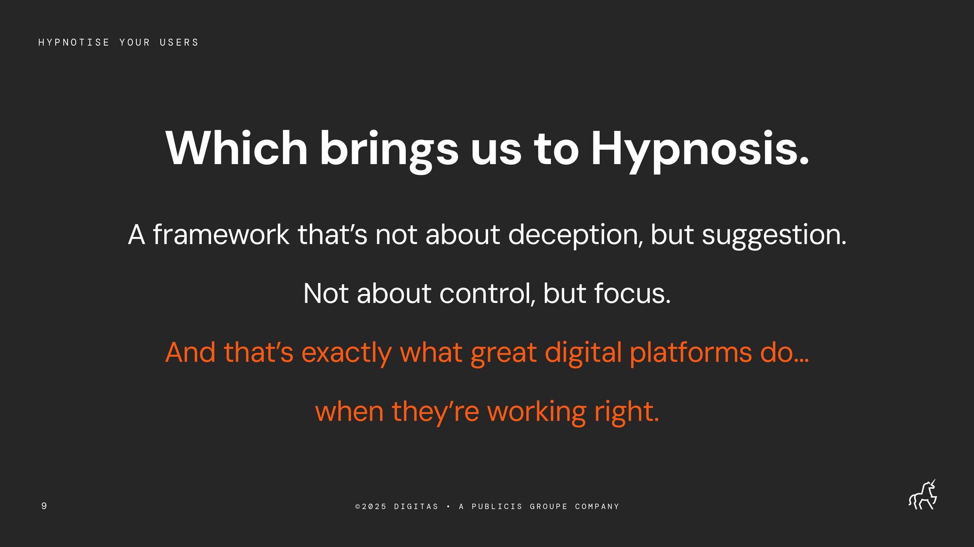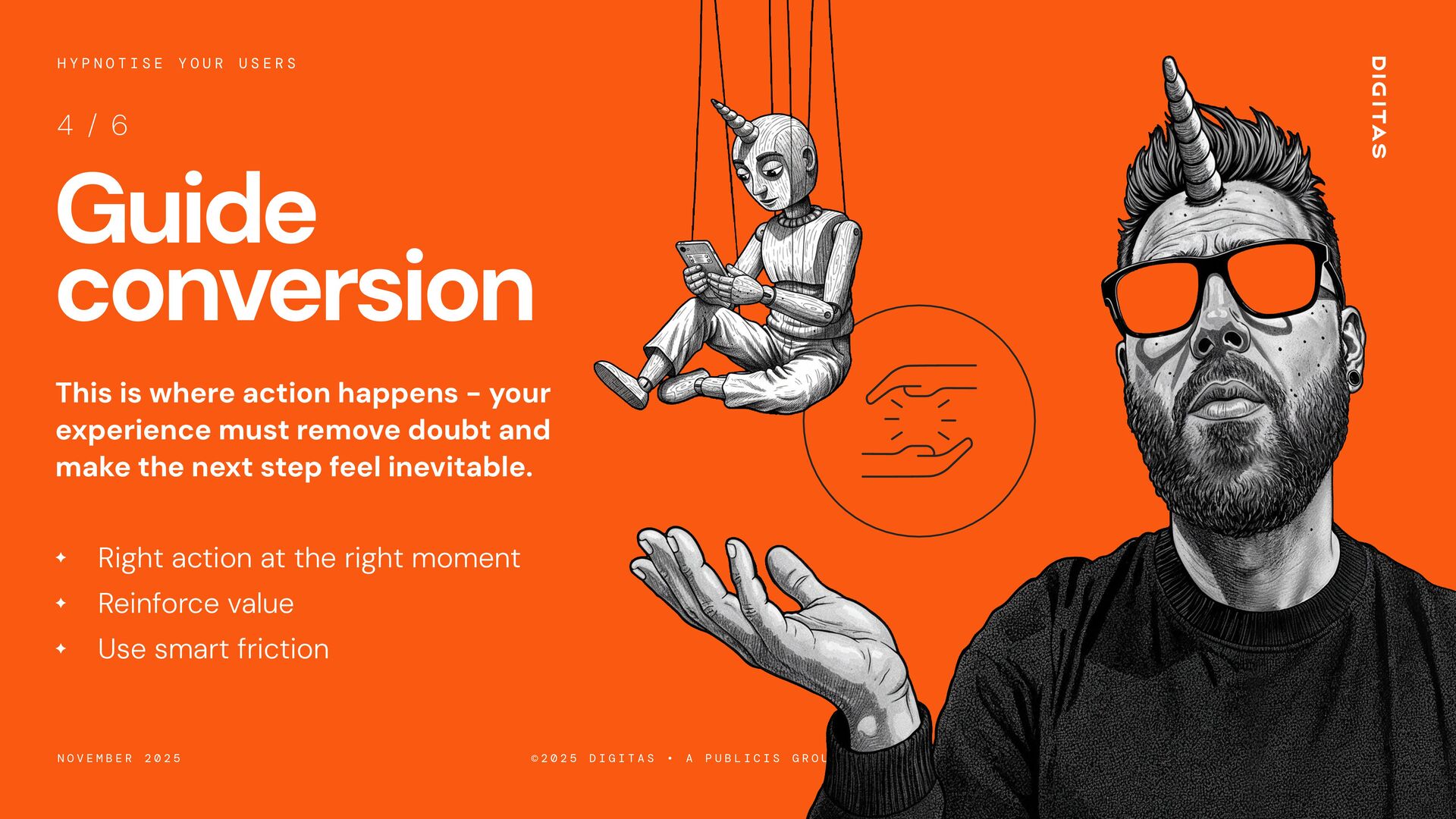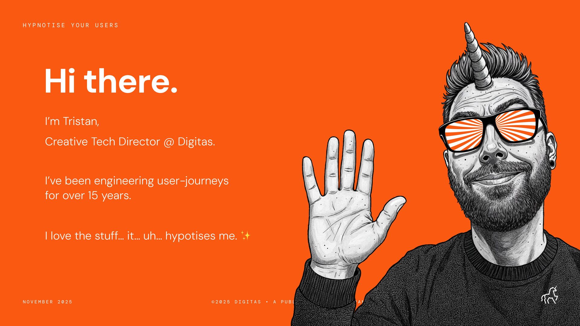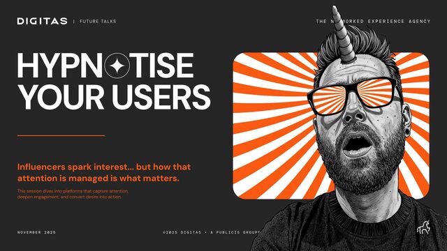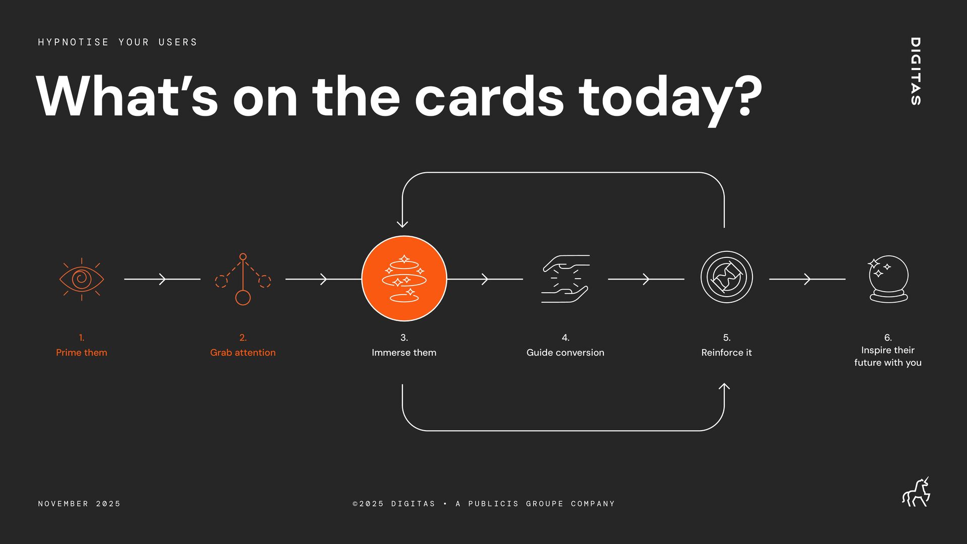 Digitas Future Talks - Hypnotise Your Users is a masterclass on behavioural design, platform mechanics, and how digital experiences drive action. Presented by Tristan, Creative Tech Director at Digitas, this session breaks down the six-stage blueprint that moves a user from curiosity to conversion and ultimately into sustained loyalty.