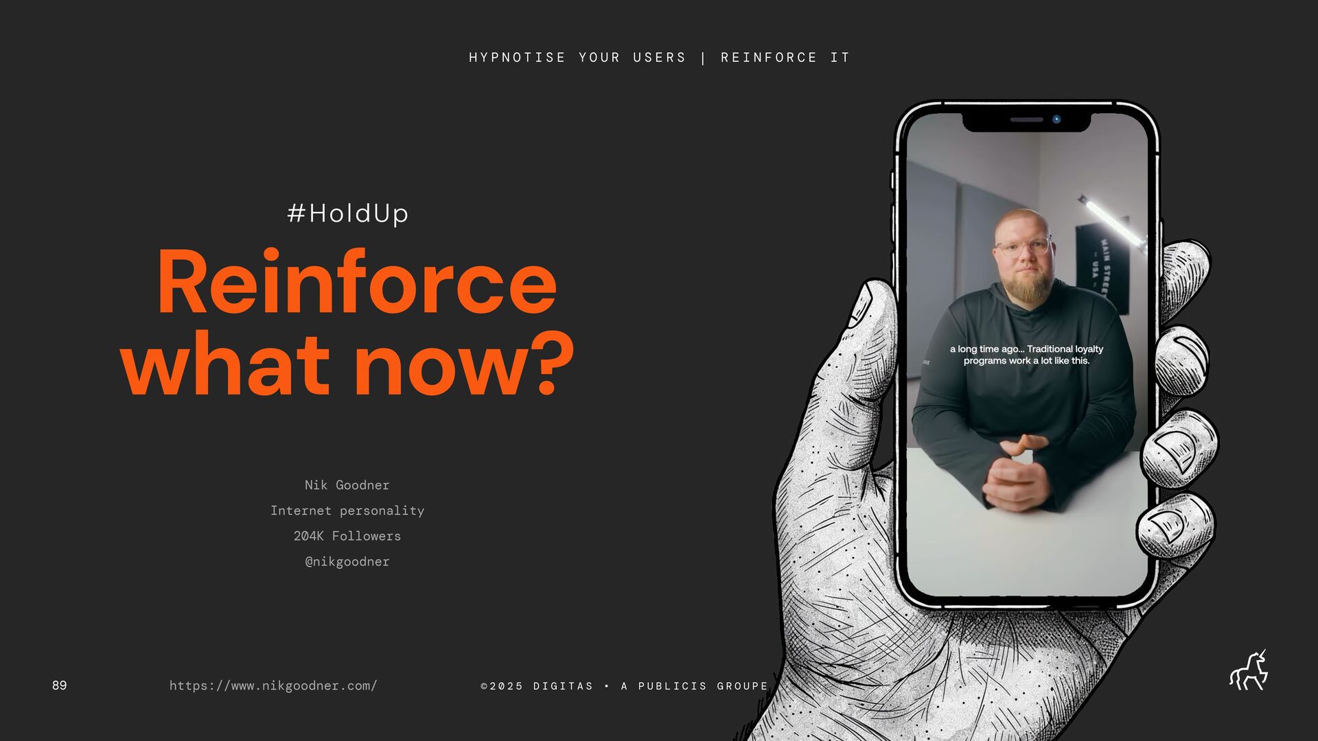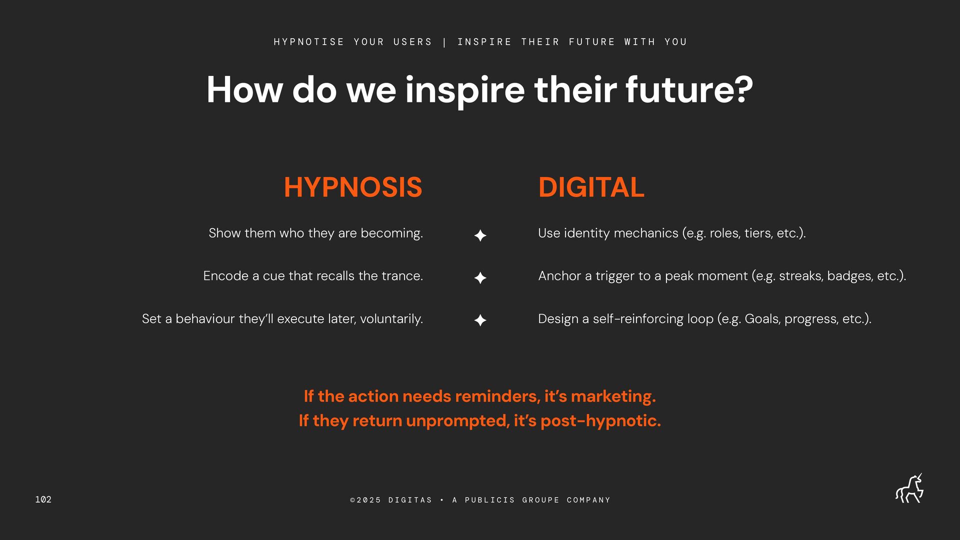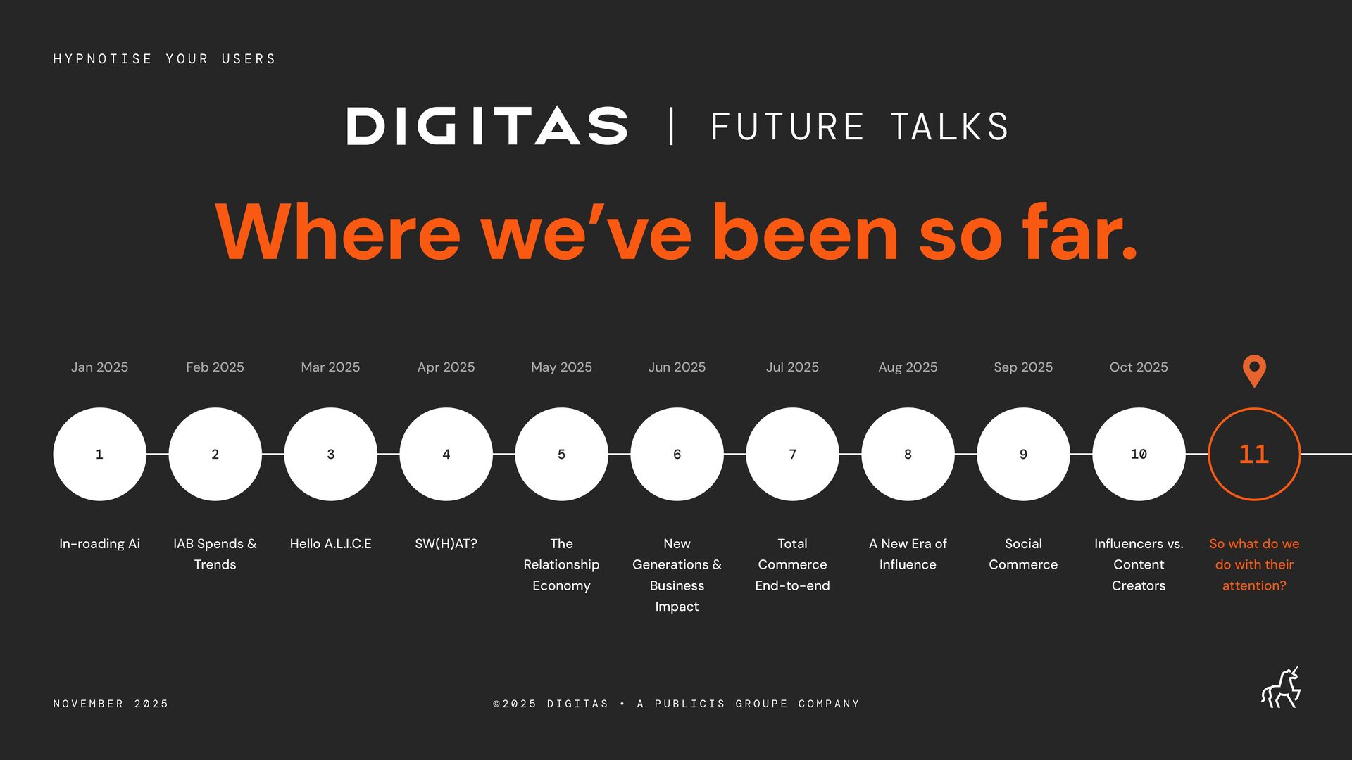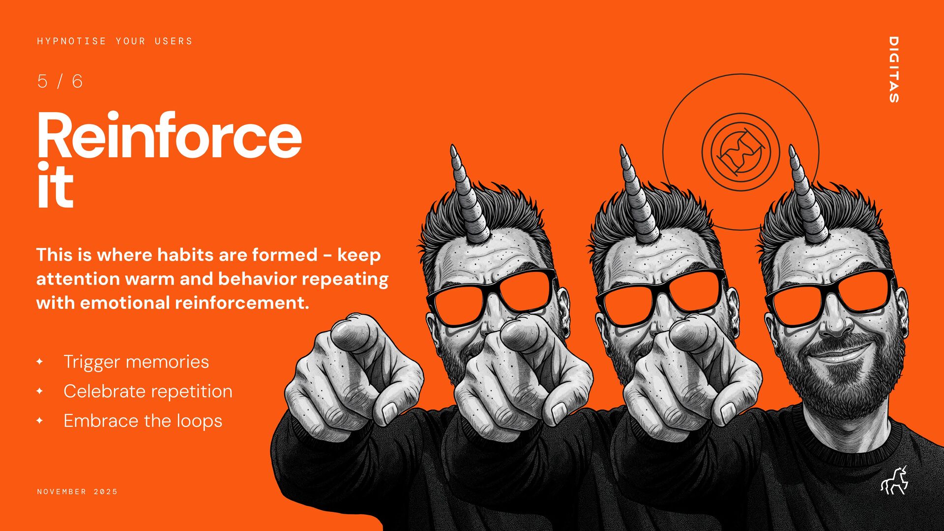 Digitas Future Talks - Hypnotise Your Users is a masterclass on behavioural design, platform mechanics, and how digital experiences drive action. Presented by Tristan, Creative Tech Director at Digitas, this session breaks down the six-stage blueprint that moves a user from curiosity to conversion and ultimately into sustained loyalty.