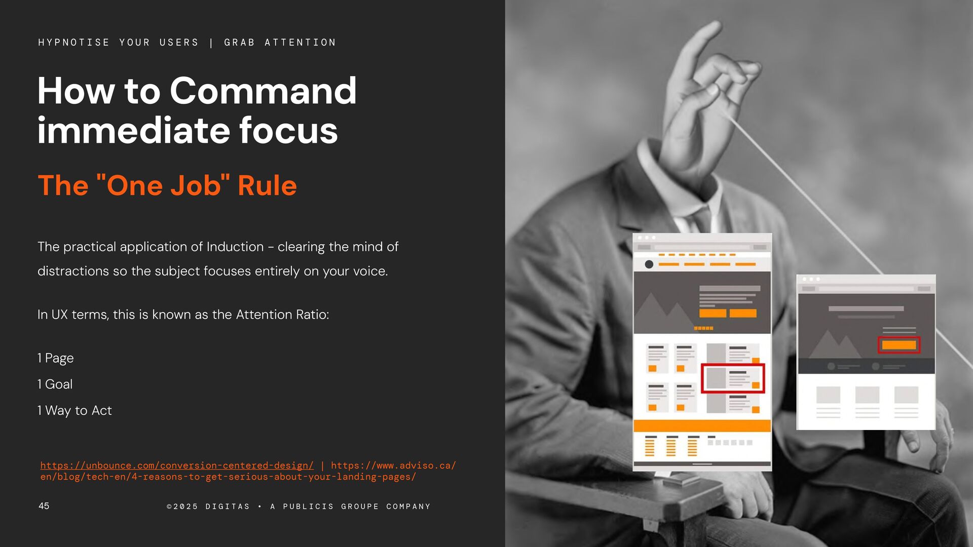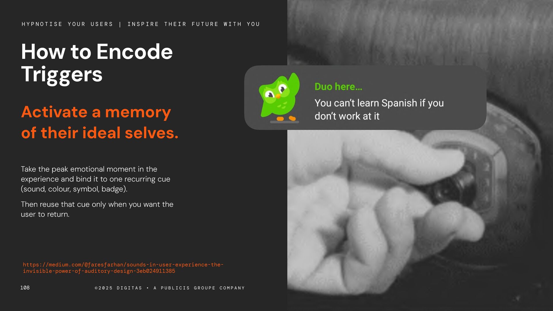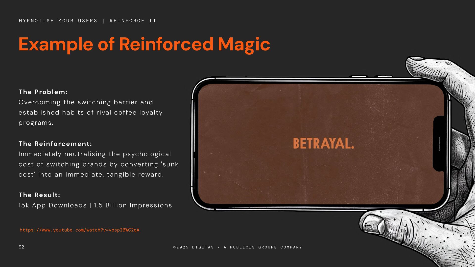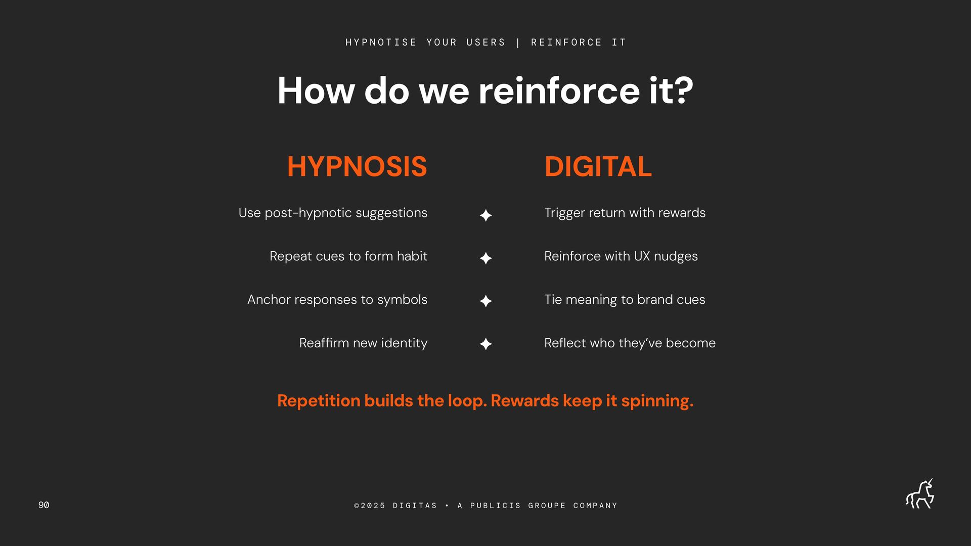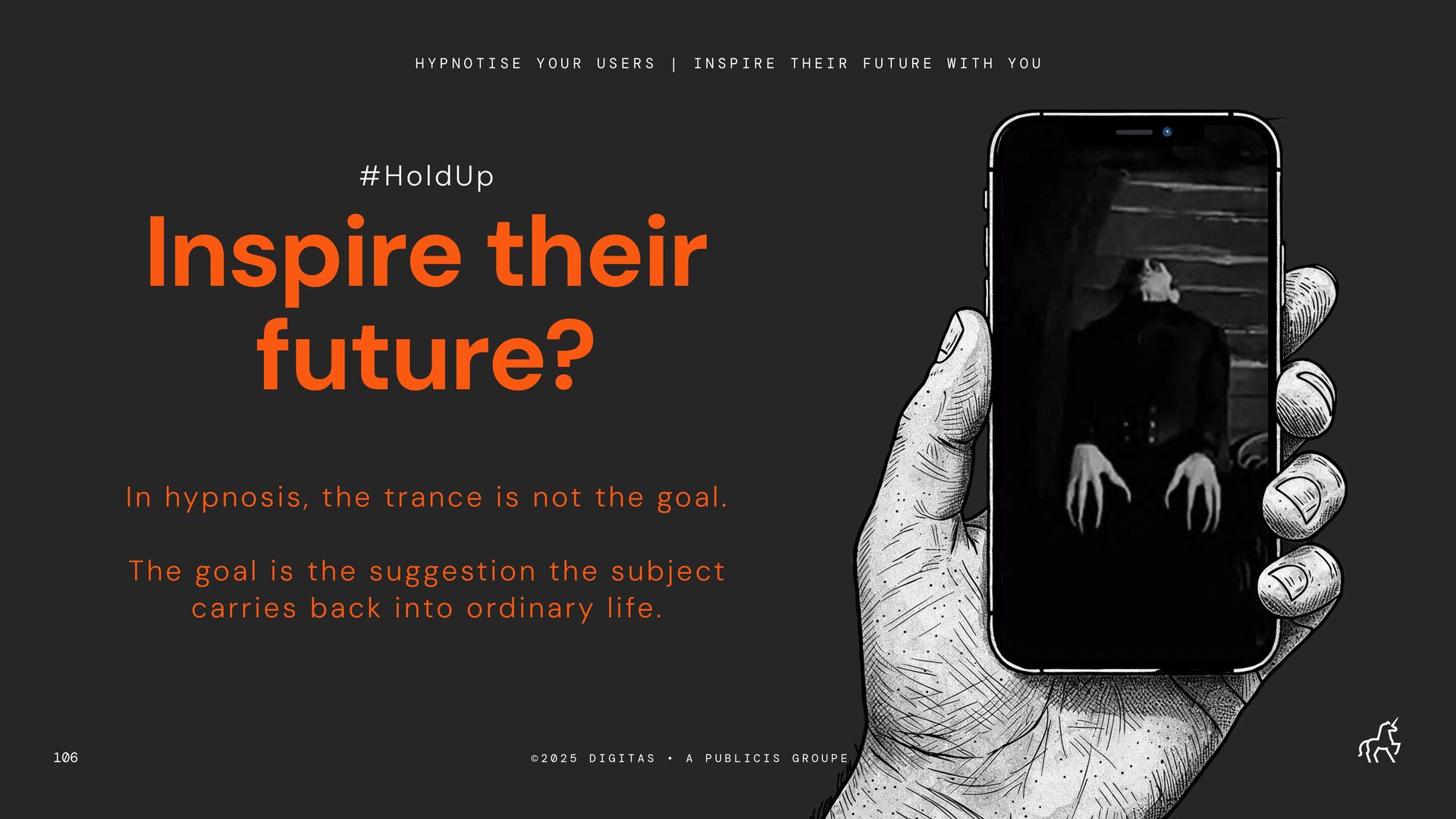 The session shows how principles of hypnosis—focus, trust, suggestion, immersion—map directly onto modern UX strategy. Platforms that prime attention, reduce resistance, and reinforce identity don’t coerce behaviour; they make action feel voluntary and inevitable.