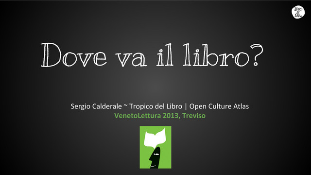 Le slide che hanno accompagnato l'intervento di Tropico del Libro, tenuto da Sergio Calderale, nella conferenza NUOVE BIBLIOTECHE PER NUOVI LETTORI, organizzato da Veneto Letture 2013, tenutasi giovedì 7 novembre 2013 a Treviso, alla Fondazione Benetton Studi Ricerche.