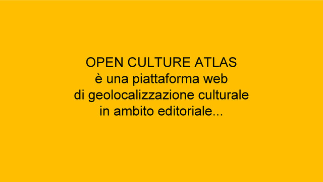 Con Open Culture Atlas puoi ora trovare e promuovere eventi e luoghi dell'editoria: http://opencultureatlas.tropicodellibro.it/ Open Culture Atlas è una piattaforma di geolocalizzazione culturale pensata e realizzata da Tropico del Libro