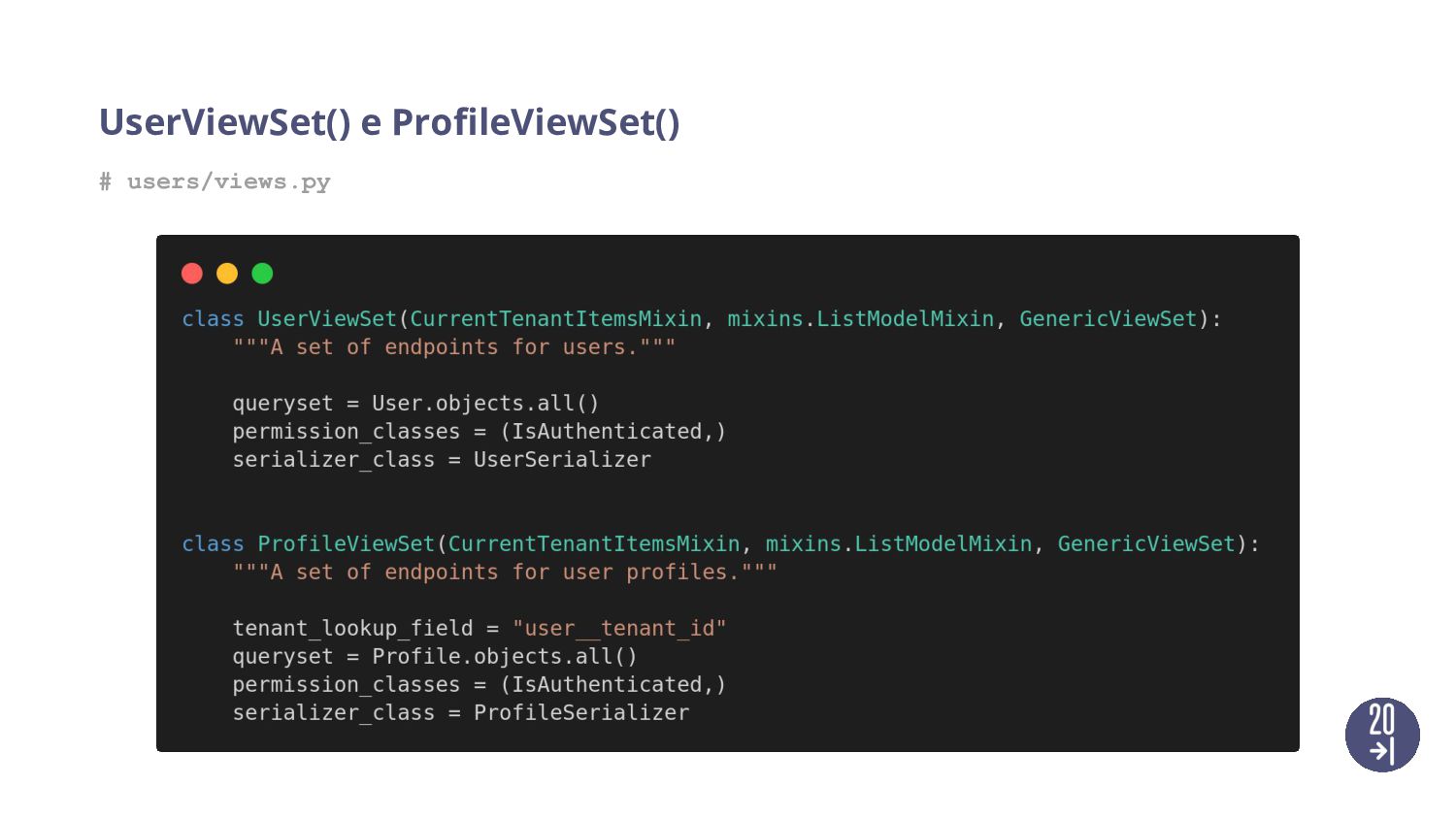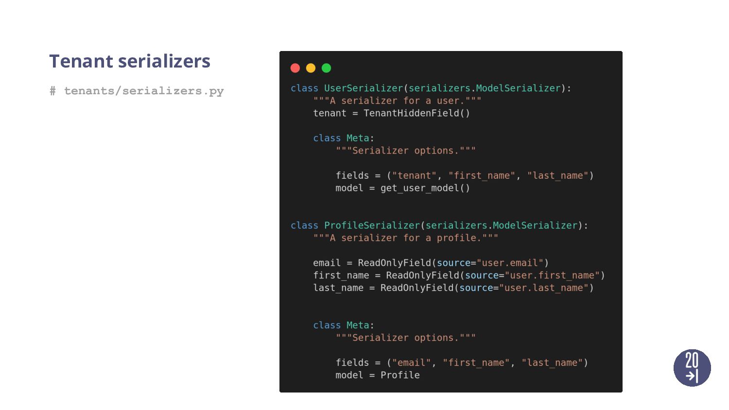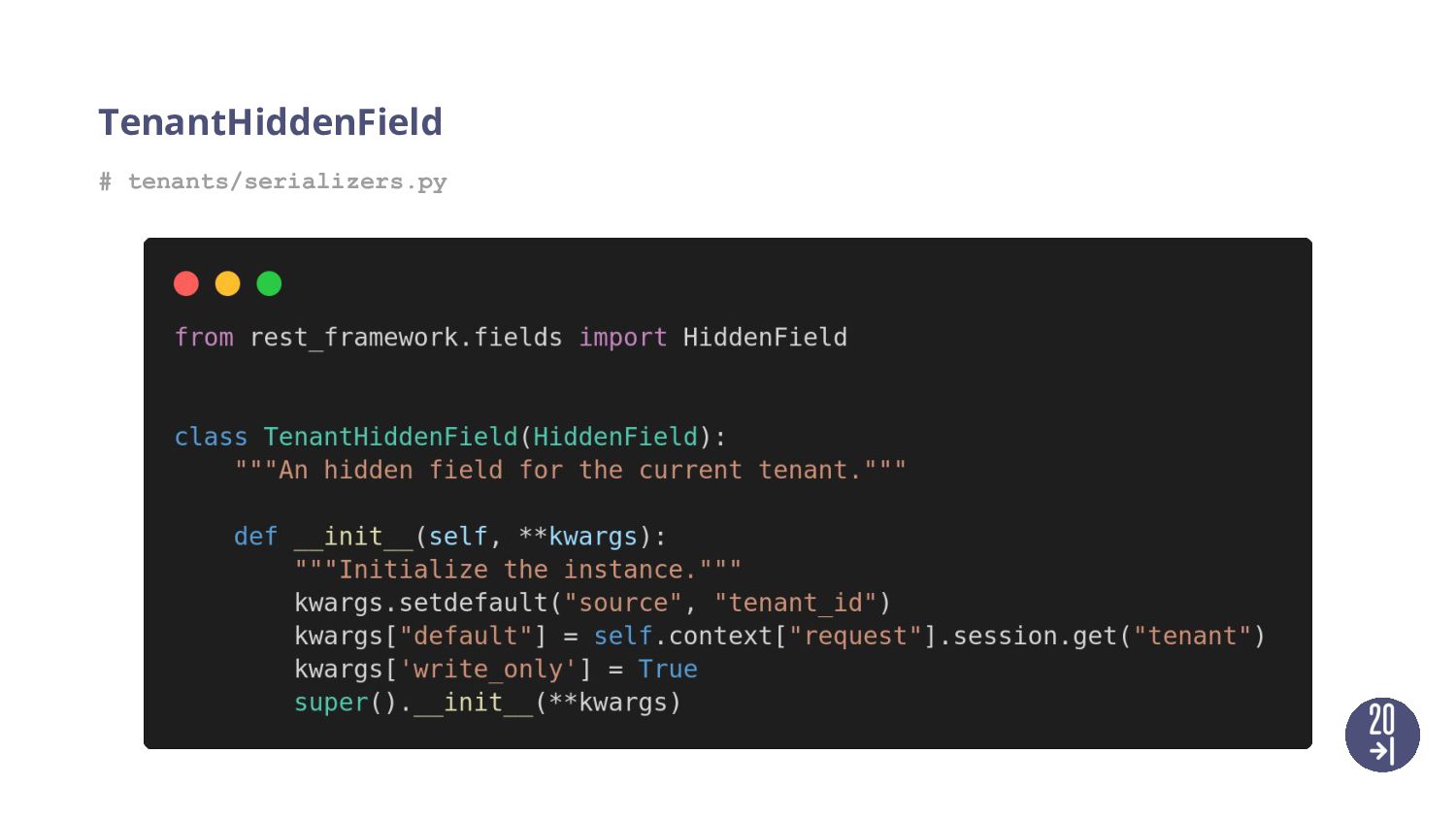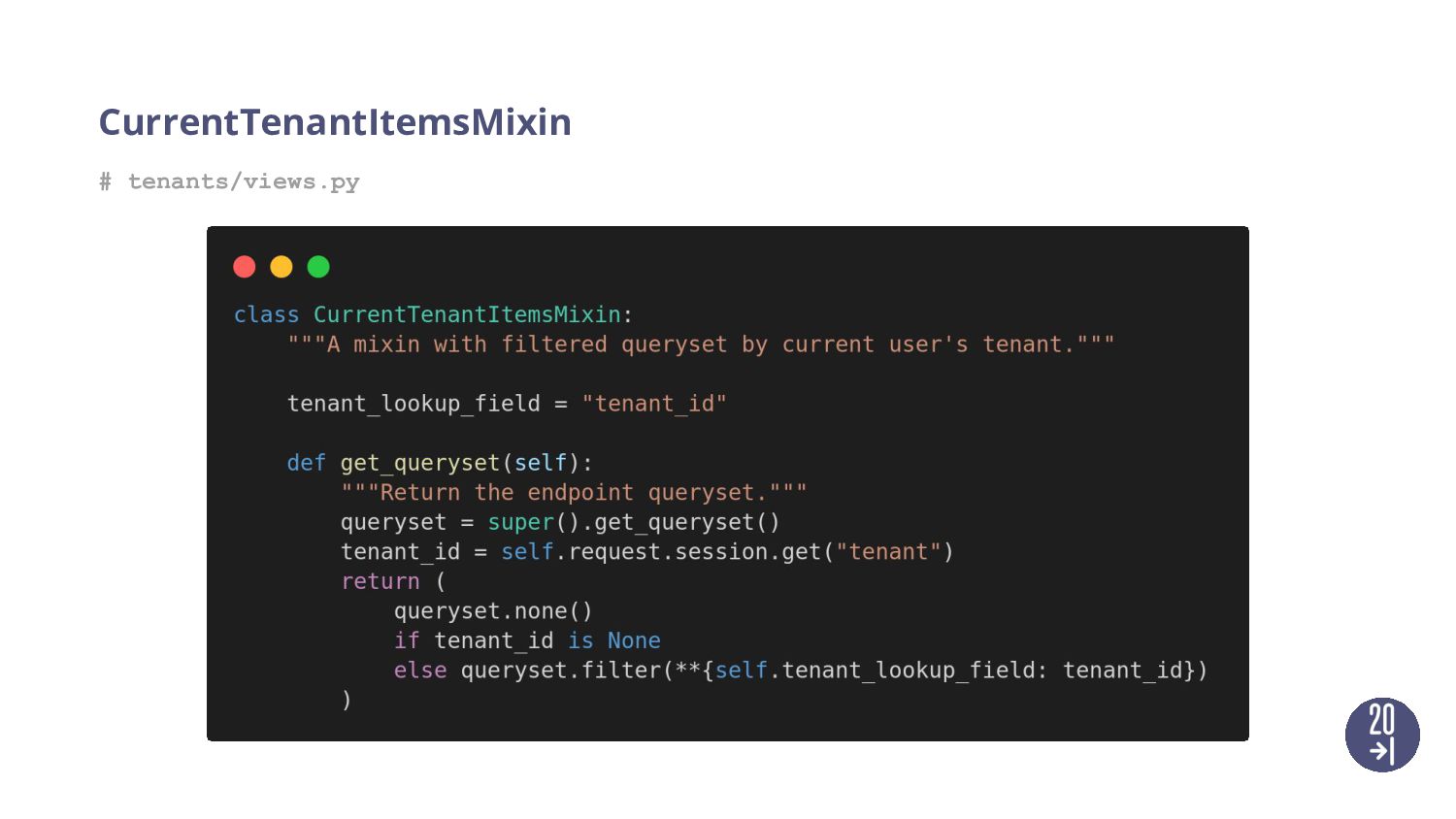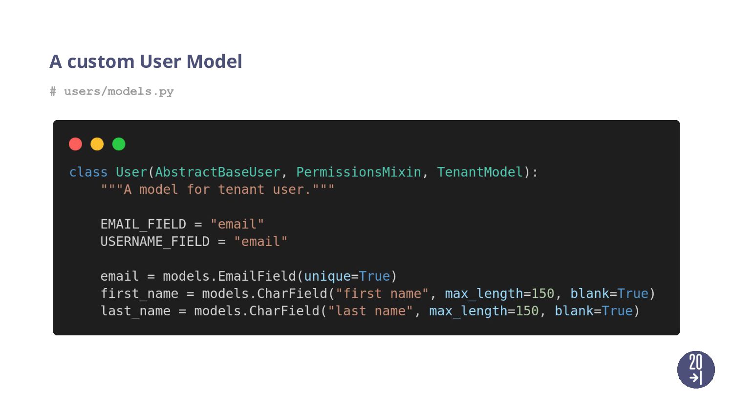 consentono di servire più clienti con un'unica installazione dell'applicazione. Ogni cliente (tenant) ha i propri dati completamente isolati in tale architettura”. • Database condiviso e schema condivisi • Database condiviso e schema isolati • Database isolato e schema isolati • Tenant completamente isolati Fonte: https://books.agiliq.com/projects/django-multi-tenant/en/latest/index.html