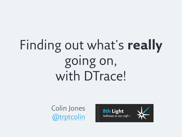 = timestamp; } pid$target::getaddrinfo:entry { self->host = copyinstr(arg0); self->start = timestamp; } pid$target::getaddrinfo:return /self->start/ { this->now = (timestamp - timezero) / 1000000; this->time = (timestamp - self->start) / 1000000; printf("%-8d %-8d %s\n", this->now, this->time, self->host); self->start = 0; self->host = 0; } $ sudo dns_latency.d -p 41161 Password: TICK ms HOST 74450 274 redclay.local 74734 0 redclay.local 105006 30075 someplace.com 145171 30075 someplace.com 145191 1 redclay.local 145192 0 redclay.local 177055 0 example.com 252314 2 redclay.local 252315 0 redclay.local 284392 0 example.com