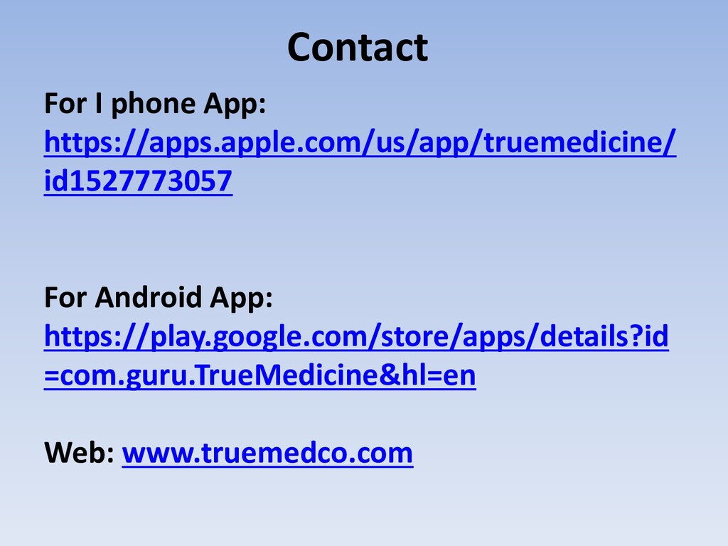 you can ask your Health or Medical questions to specialist doctors for diagnosis and medical advice. A specialist Doctor will be appointed to you instantly Web: www.truemedco.com https://apps.apple.com/us/app/truemedicine/id1527773057 https://play.google.com/store/apps/details?id=com.guru.TrueMedicine &hl=en