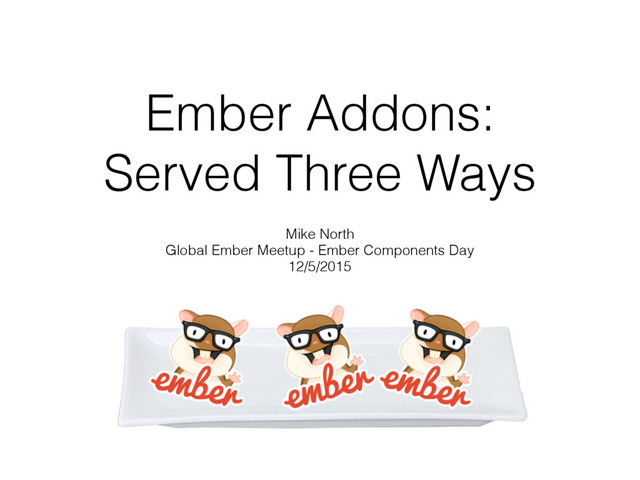 A discussion of three types of ember addons: one that makes components available to consuming apps, one that modifies the asset pipeline of consuming app, and one that adds a new command to ember-cli