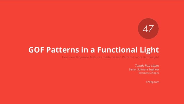 features made Design Patterns more lightweight Tomás Ruiz López Senior Software Engineer @tomasruizlopez