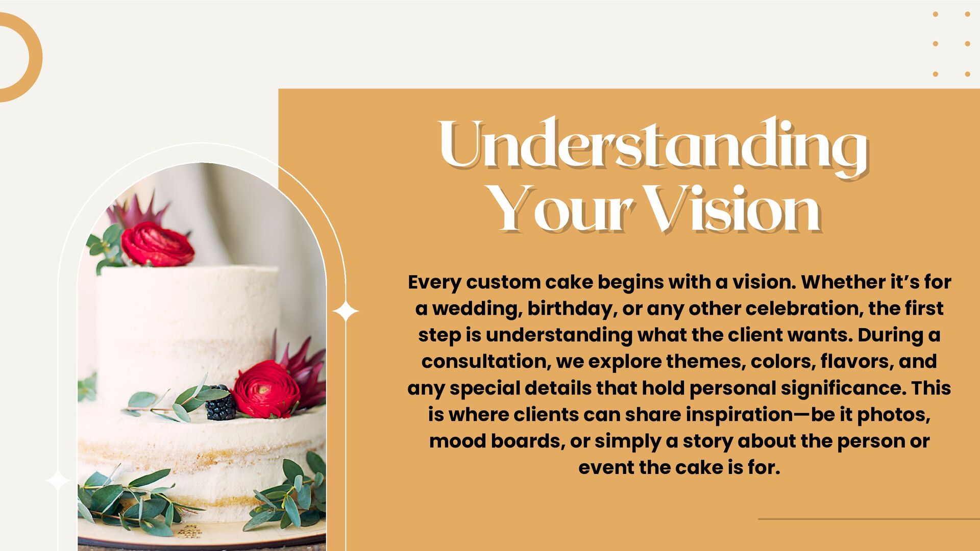 Creating a custom cake is an art form that brings a client's vision to life, blending creativity, craftsmanship, and personal touches. Here’s a look at the journey of designing and crafting a custom cake that’s as unique as the occasion it celebrates.