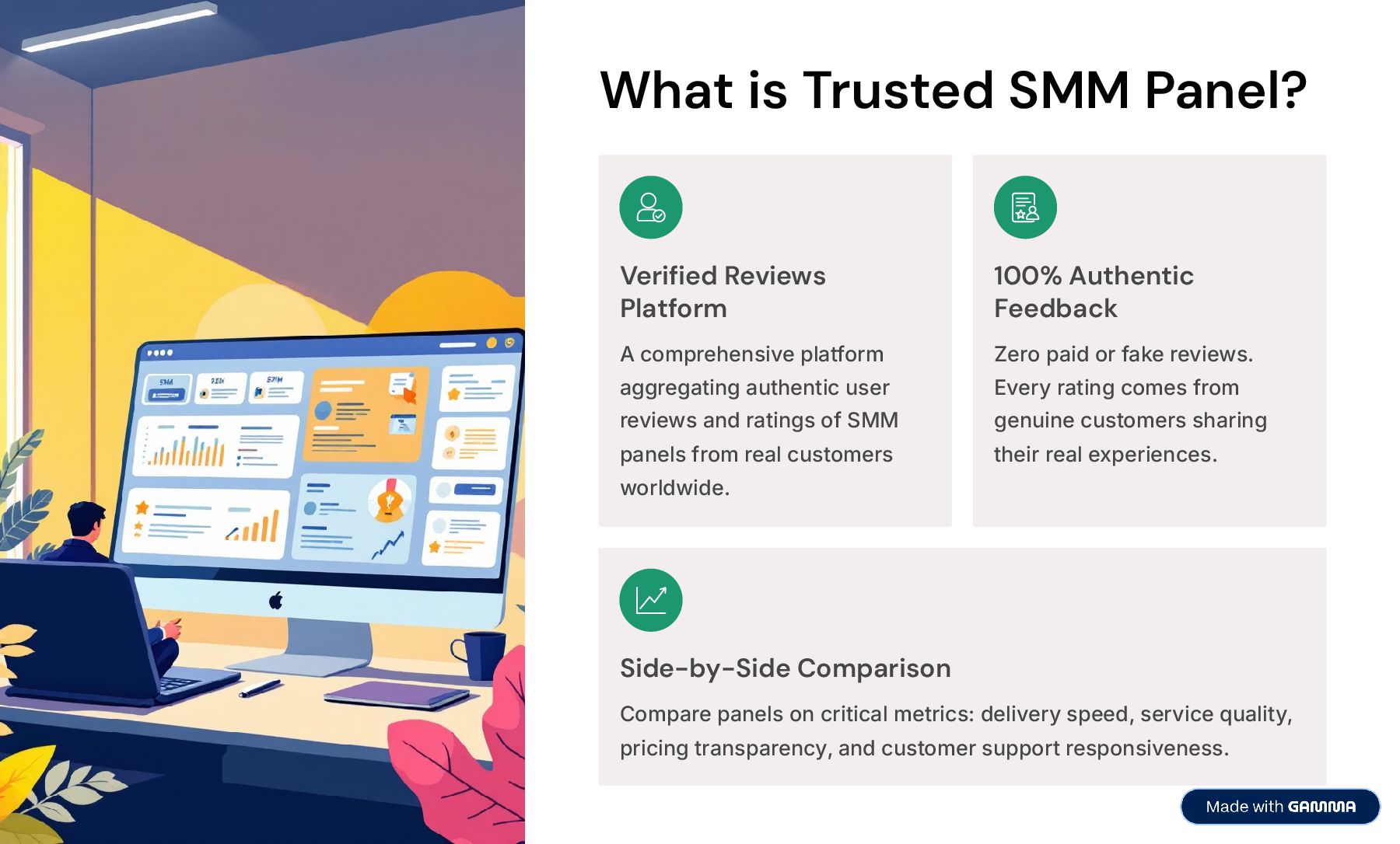 platform aggregating authentic user reviews and ratings of SMM panels from real customers worldwide. 100% Authentic Feedback Zero paid or fake reviews. Every rating comes from genuine customers sharing their real experiences. Side-by-Side Comparison Compare panels on critical metrics: delivery speed, service quality, pricing transparency, and customer support responsiveness.