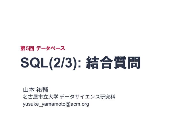 SQL(2/3): 結合質問 ⼭本 祐輔 名古屋市⽴⼤学 データサイエンス研究科