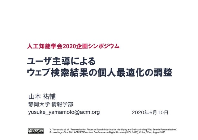 Yamamoto et. al: “Personalization Finder: A Search Interface for Identifying and Self-controlling Web Search Personalization”, Proceedings of the 20th ACM/IEEE on Joint Conference on Digital Libraries (JCDL 2020), China, Xi’an, August 2020