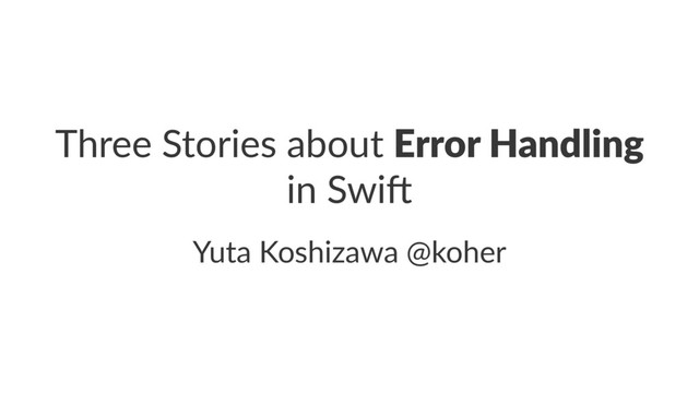 Error handling is important to write safe codes. In my presentation, I will organize the issues of error handling in Swift mainly based on my experience and thinking referring to `Error Handling Rationale and Proposal` and discussions on the swift-evolution mailing list.