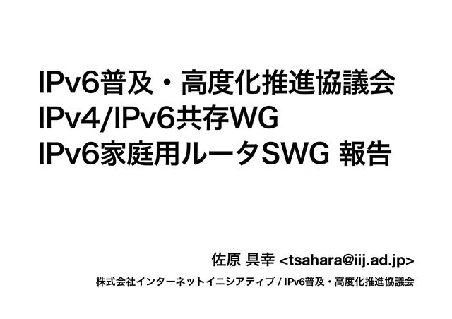 IPv6 Summit in TOKYO 2022 情報提供セッション 報告2:「IPv6普及・高度化推進協議会 IPv4/IPv6共存WG IPv6家庭用ルータSWG 報告」