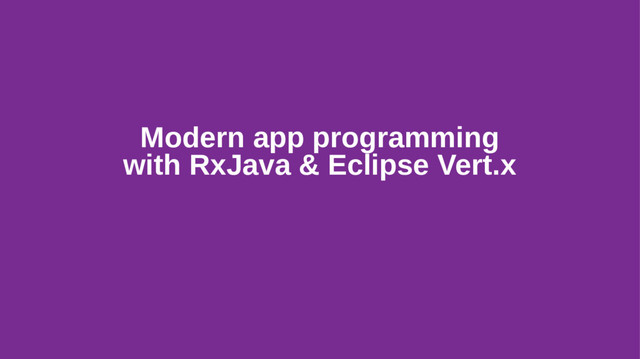 In this presentation, we will make the case for reactive programming, and introduce RxJava in particular. Then we will guide you through the process of building a real-life web application, based on Vert.x 3 and RxJava, communicating with databases, external services and modern datastores. You will learn how Vert.x integrates with RxJava, and why its simplicity makes it a perfect runtime for reactive applications.