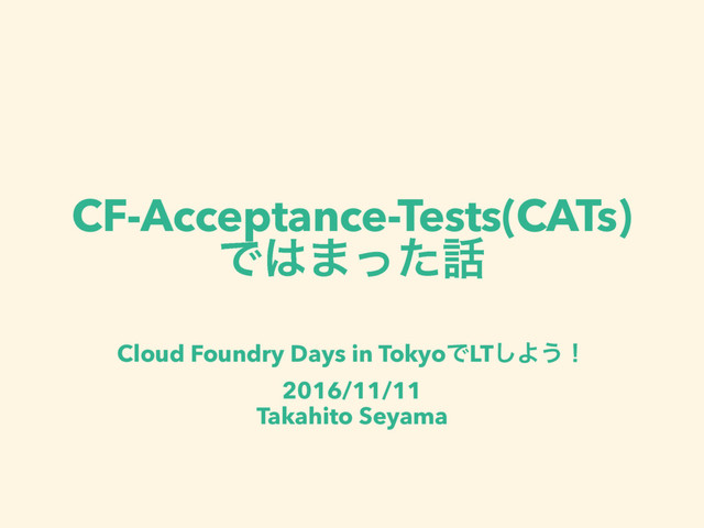 CF-Acceptance-Tests(CATs) Ͱ·ͬͨ Cloud Foundry Days in TokyoͰLT͠Α͏ʂ 2016/11/11 Takahito Seyama